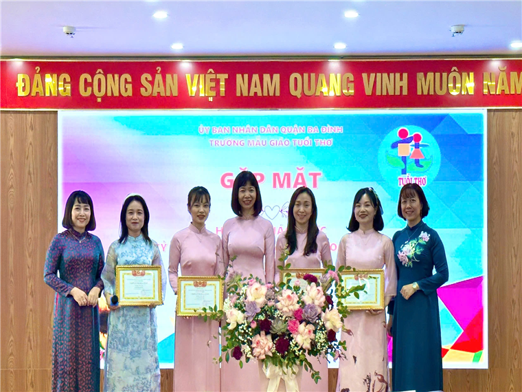 Cũng trong buổi gặp mặt trường MG Tuổi Thơ được đón nhận tình cảm sâu sắc của Đảng ủy, UBND, các ban ngành đoàn thể của phường Ngọc Khánh đã đến tặng hoa chúc mừng và động viên cô trò nhà trường nhân ngày nhà giáo Việt Nam 20/11.
