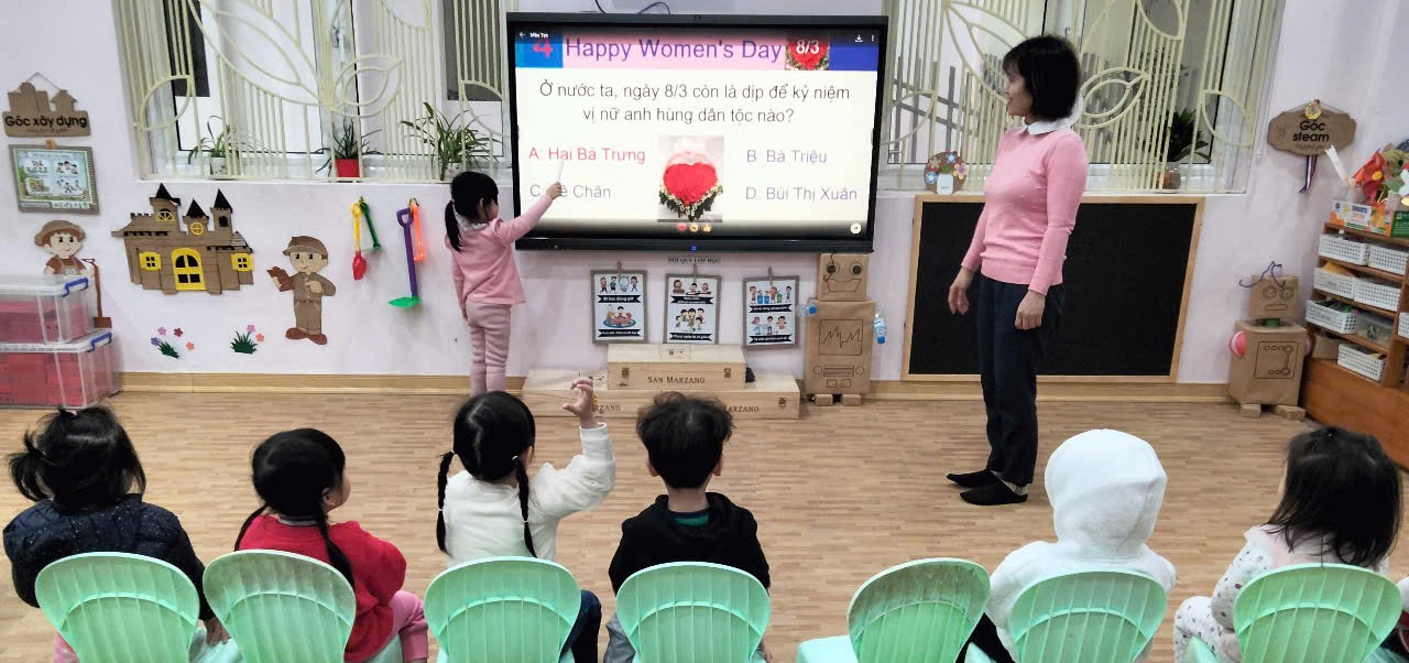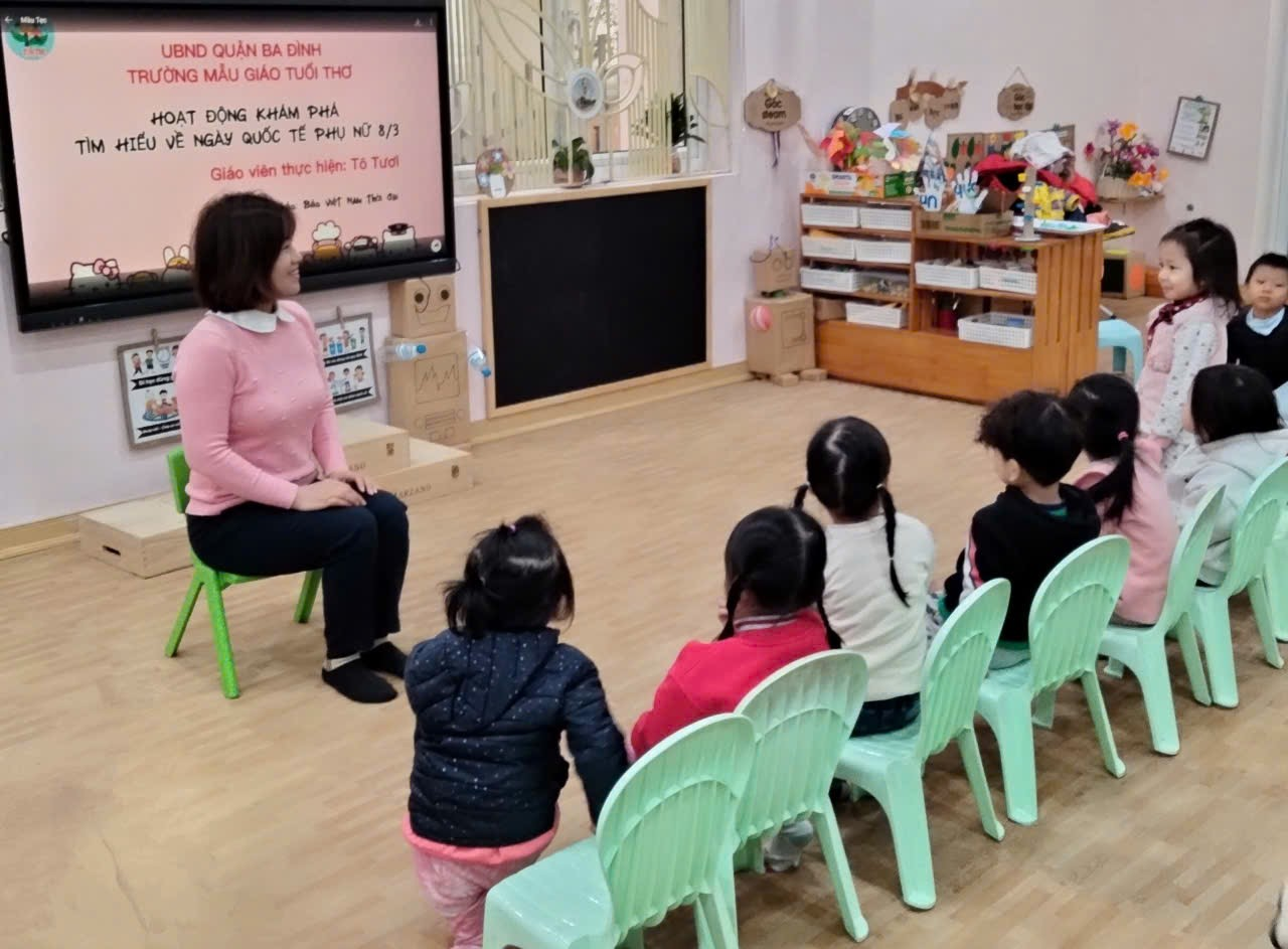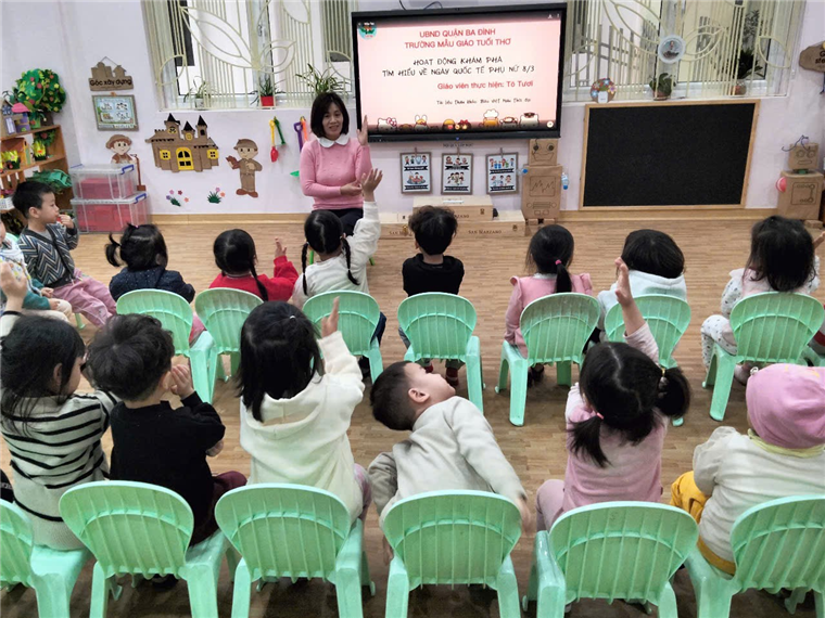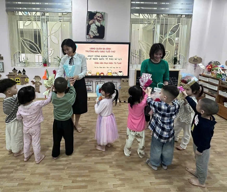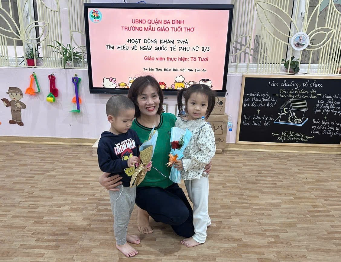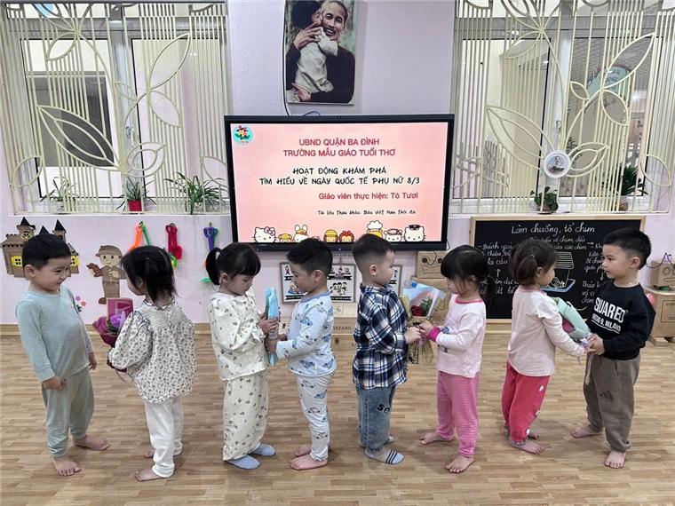 Hòa trong không khí ấy, Các cô giáo Tô Tươi, Thu Hà, Thu Trang lớp C1 đã giúp các con tìm hiểu về ngày Quốc tế Phụ nữ và tổ chức cho các con ngày lễ 8/3 thật ý nghĩa.