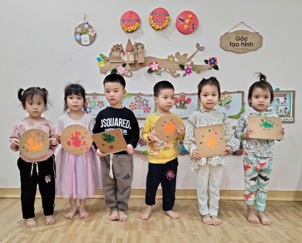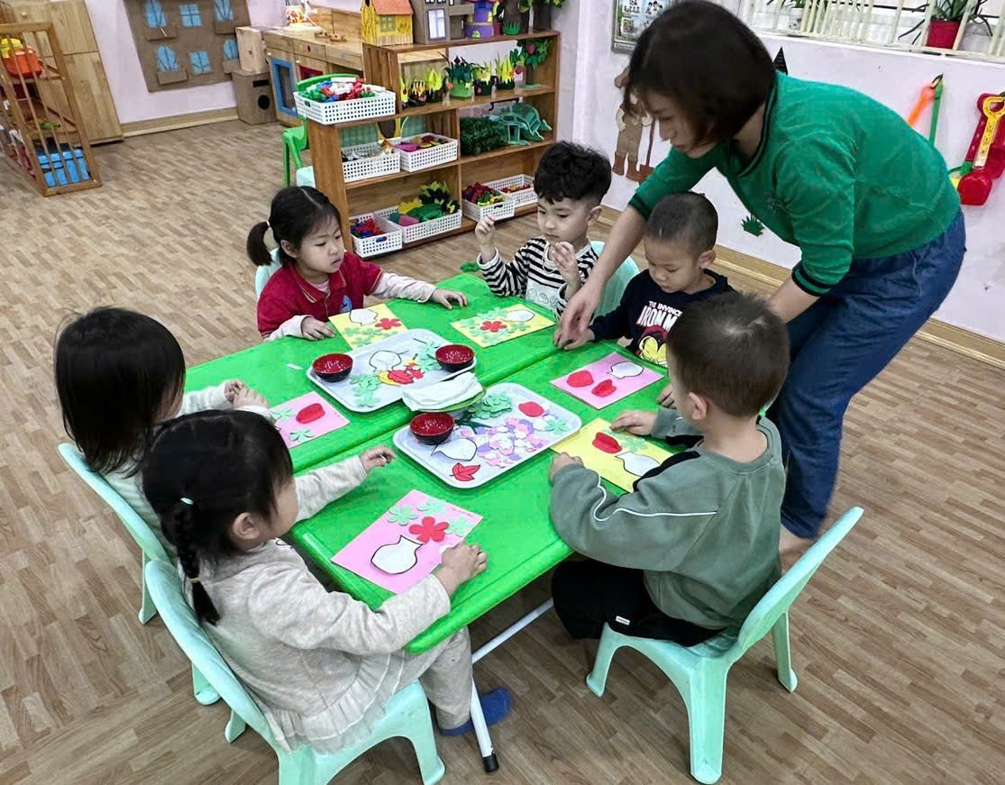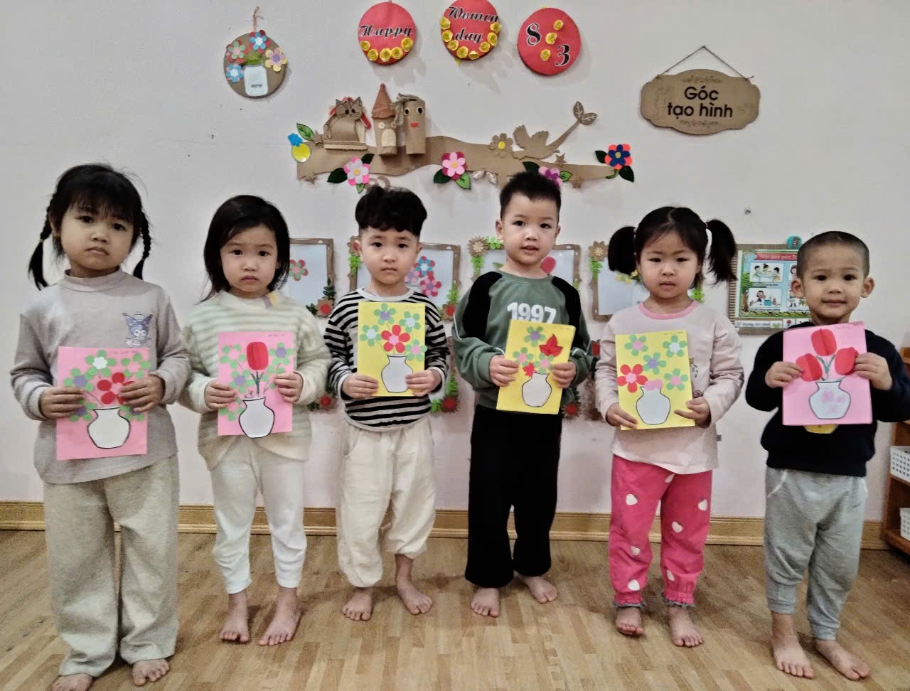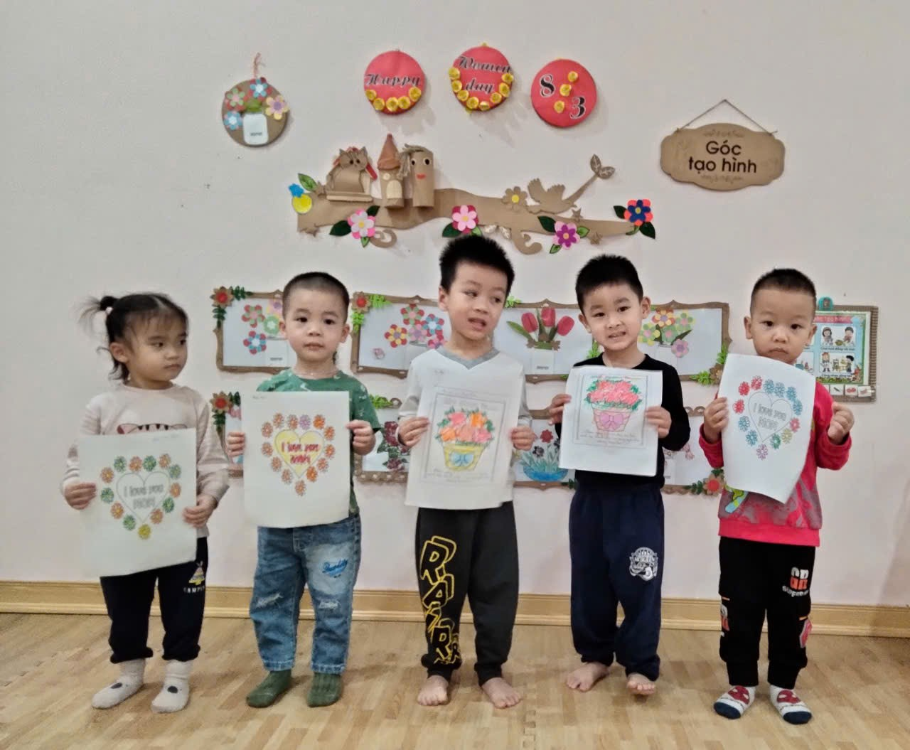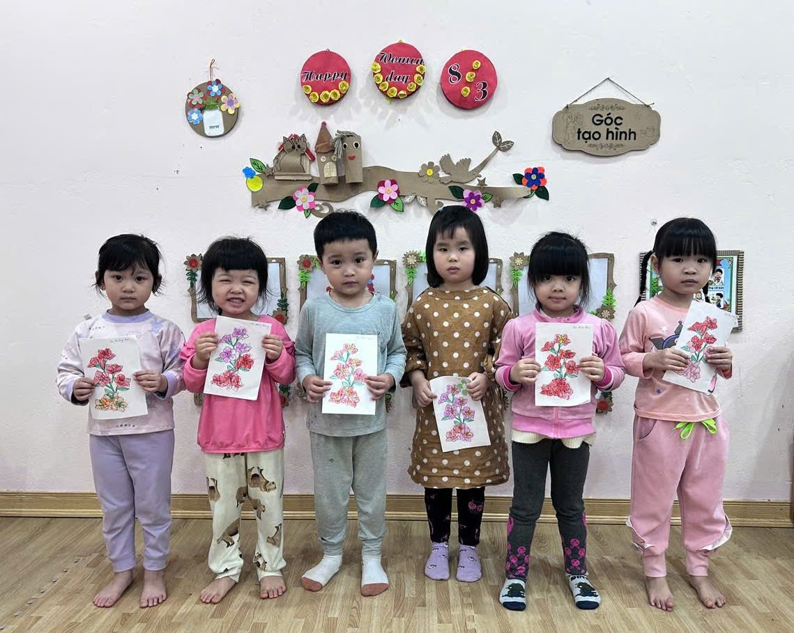 Các con tạo hình hoa tặng người thân nhân ngày 8/3