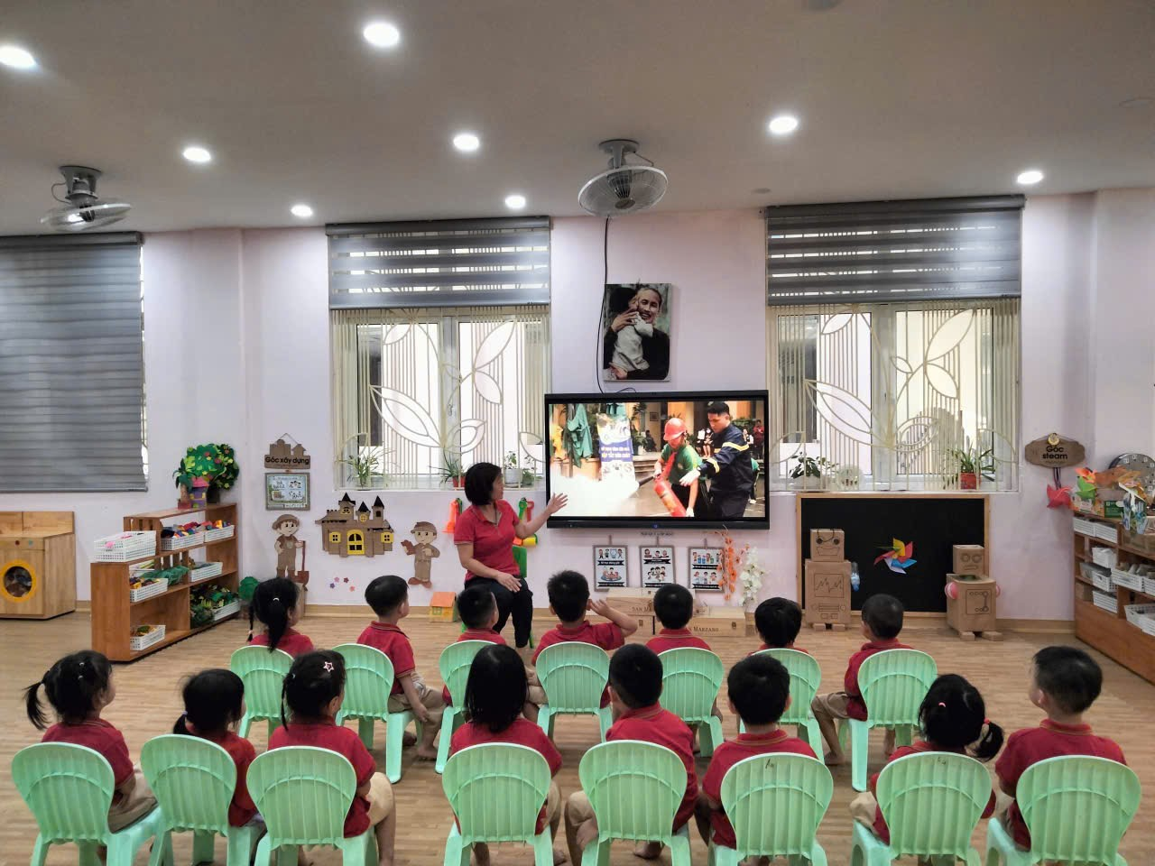 Cô cho các Bé lớp MGB C1 xem video công việc của các chú lính cứu hỏa