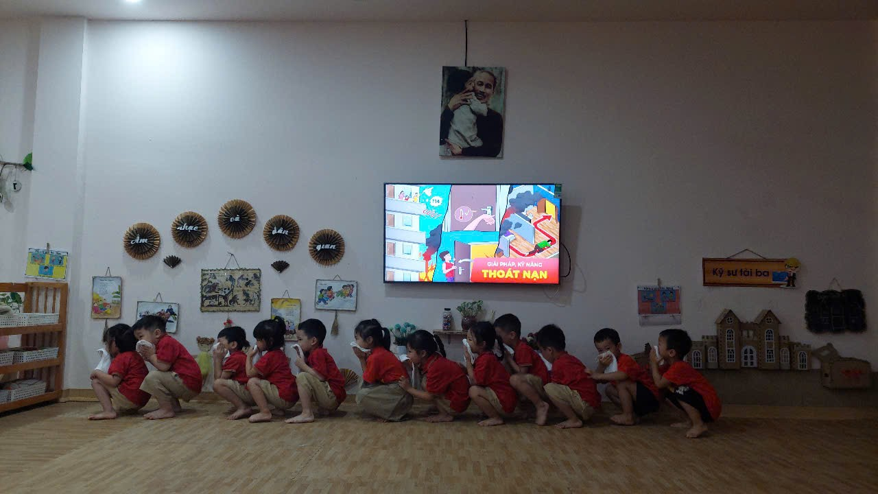 🔥 Trình chiếu hình ảnh, video kỹ năng thoát nạn, thực hành trải nghiệm giúp trẻ bước đầu hình thành kỹ năng xử lý tình huống khi có sự cố cháy nổ.
