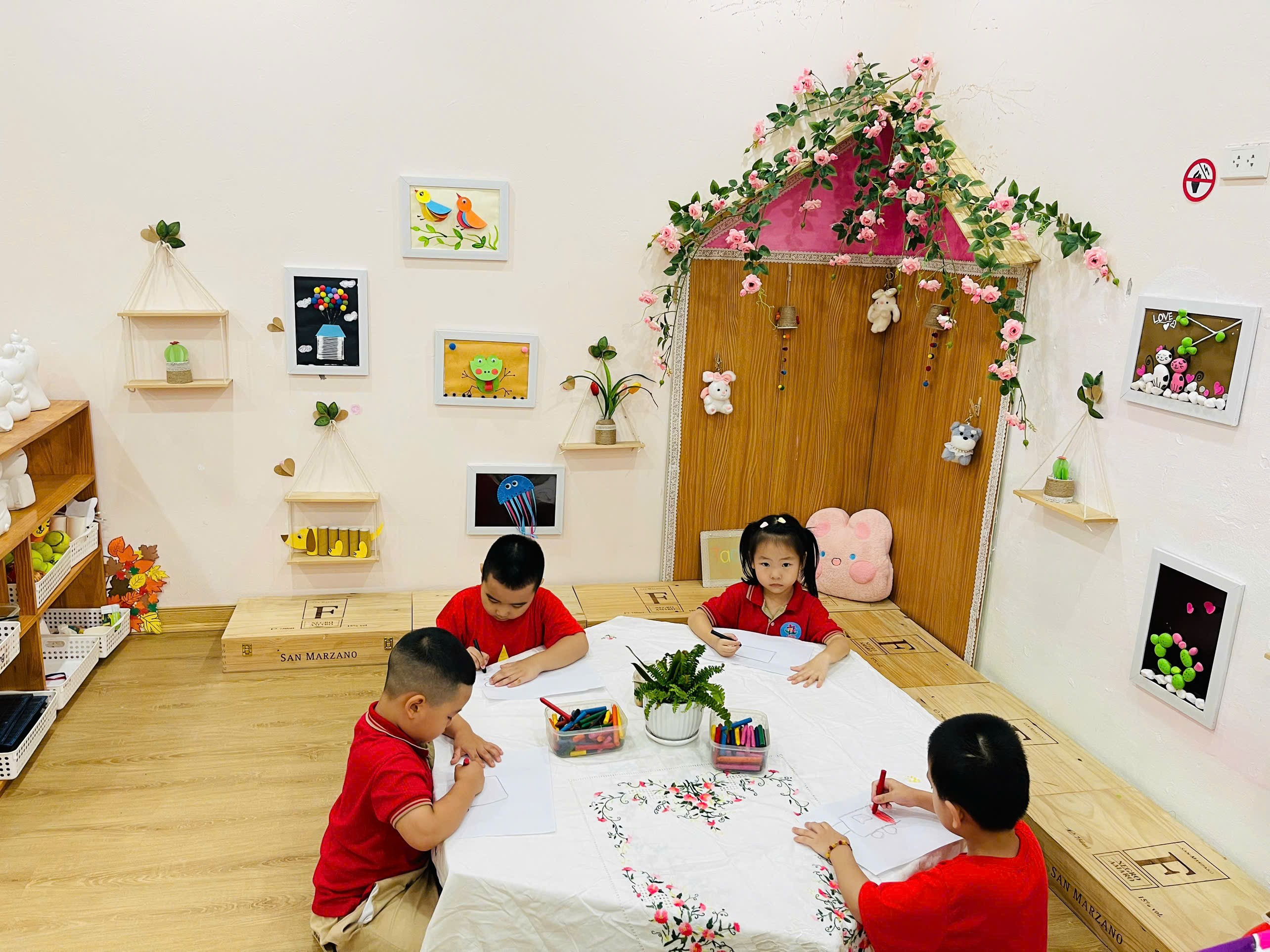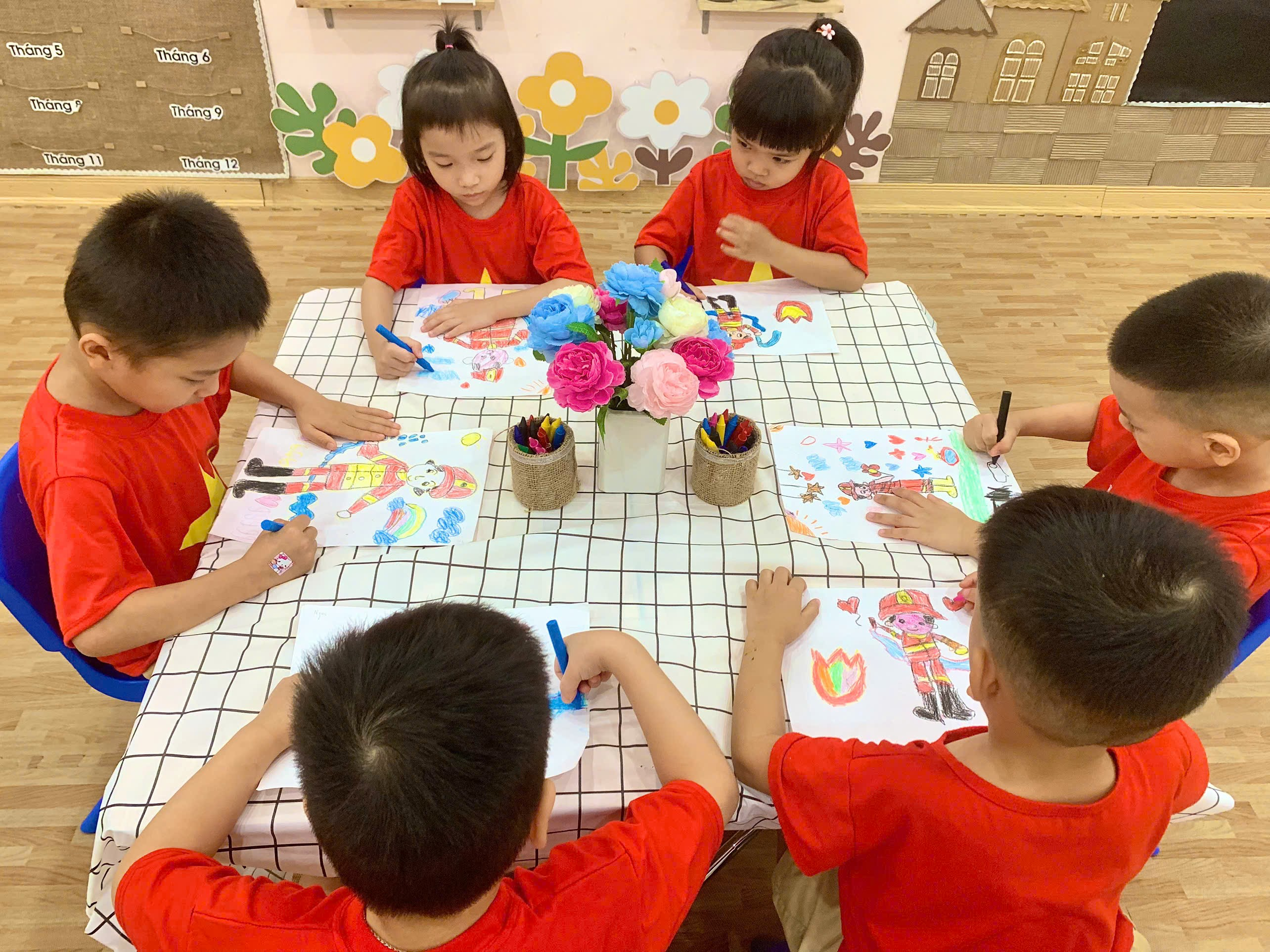 Các Bé lớp MGL A1 vẽ tranh về các chú lính cứu hỏa