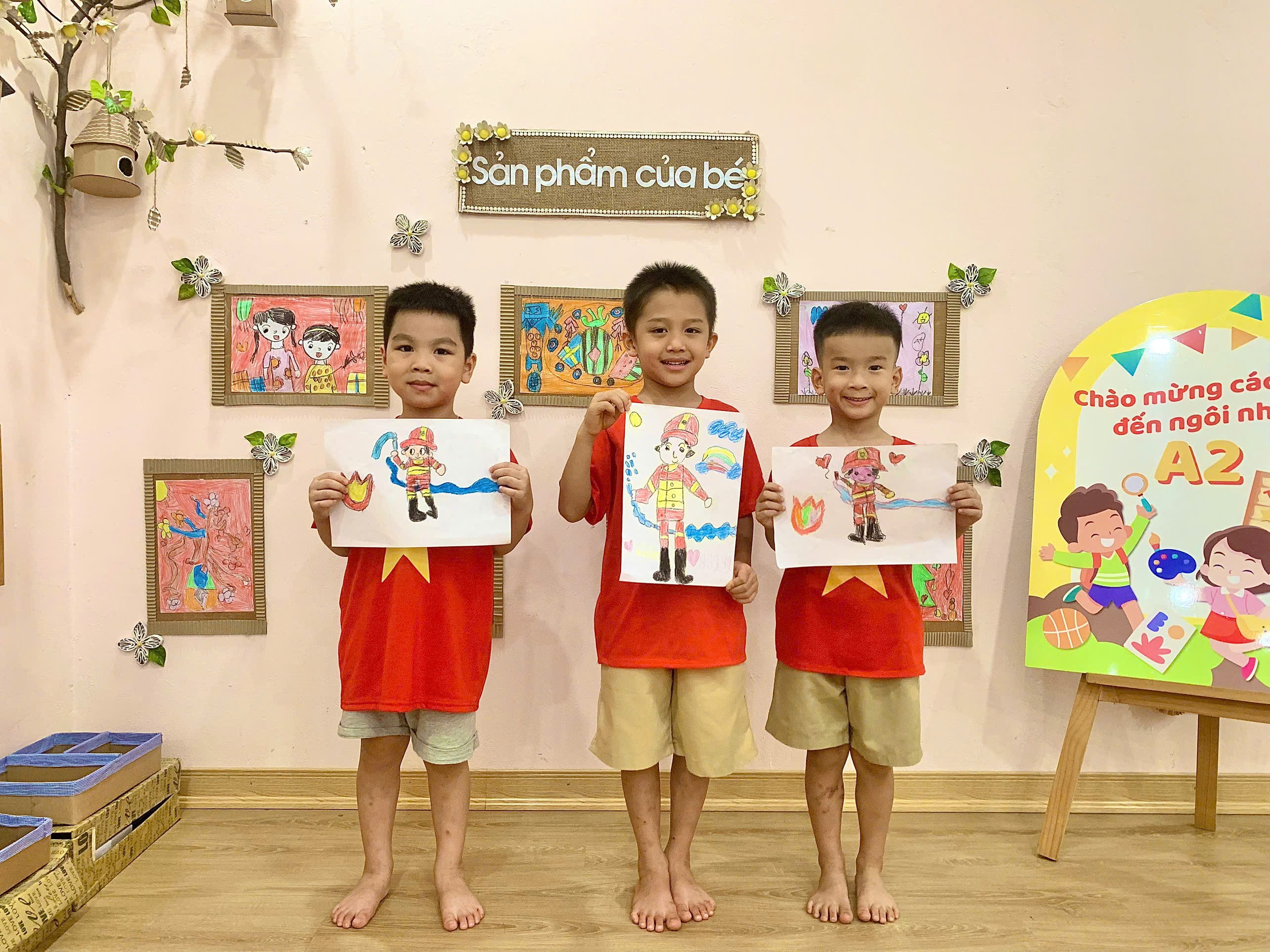 Sản phẩm vẽ tranh về chú lính cứu hỏa của các bạn nhỏ lớp MGL A1