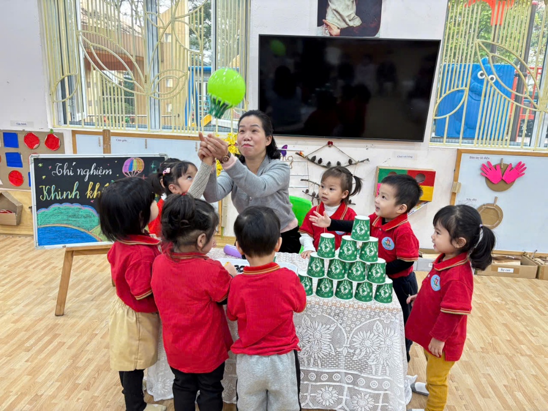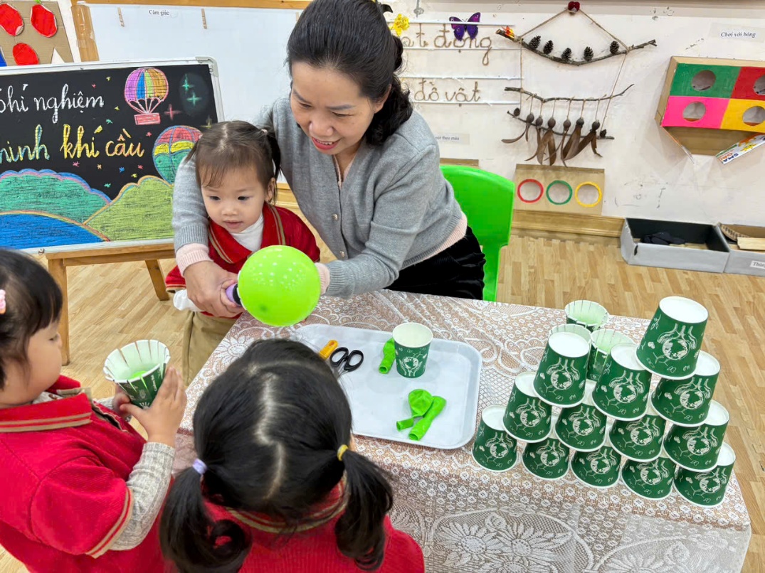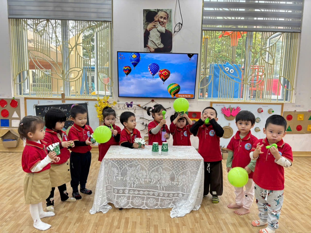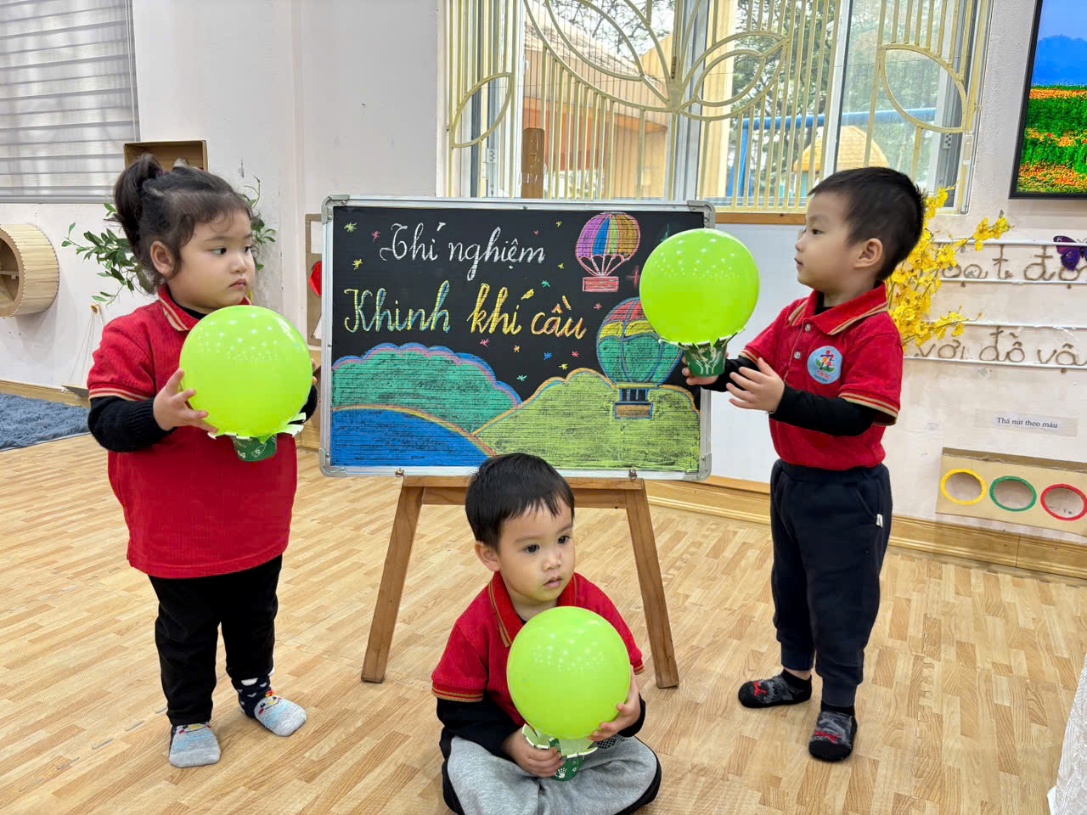 Qua trò chơi – thí nghiệm này, các con không chỉ được quan sát hiện tượng khoa học mà còn học cách khéo léo, hợp tác và sáng tạo. Ai cũng háo hức muốn thử thêm lần nữa để khinh khí cầu của mình bay cao hơn, xa hơn.