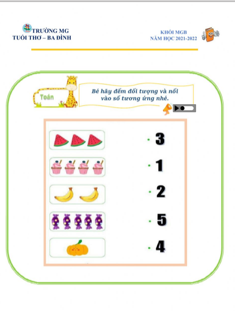 Bài tập cho trẻ MG Bé (tuần 3/10)