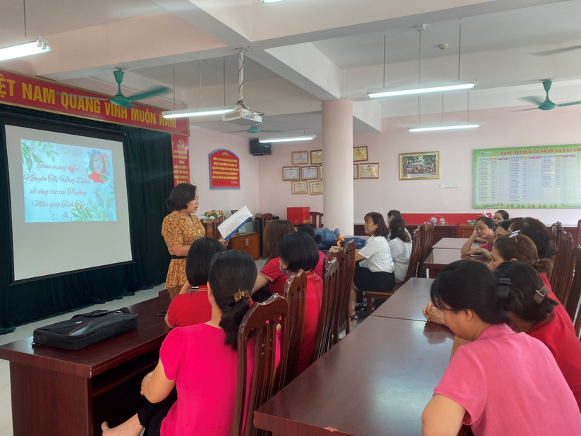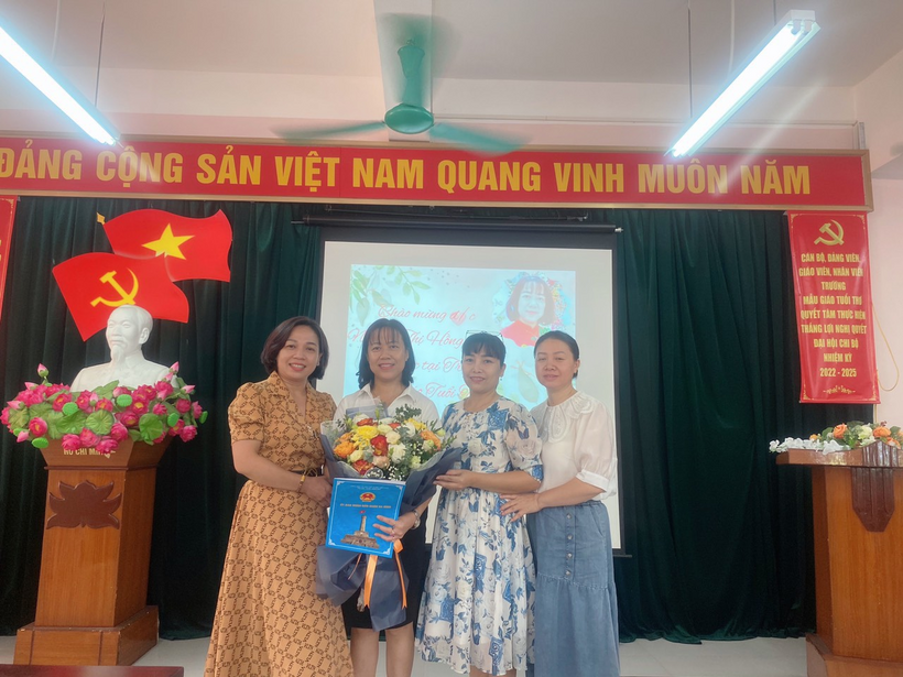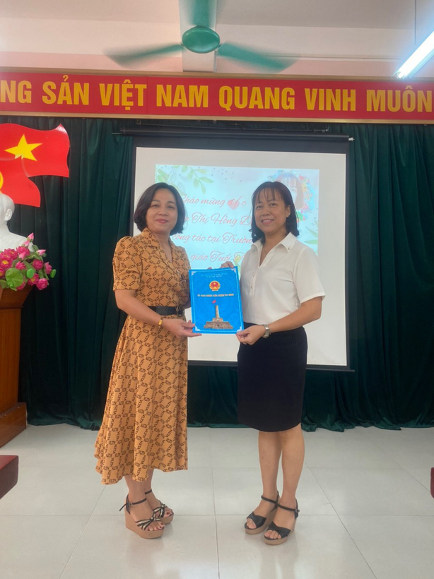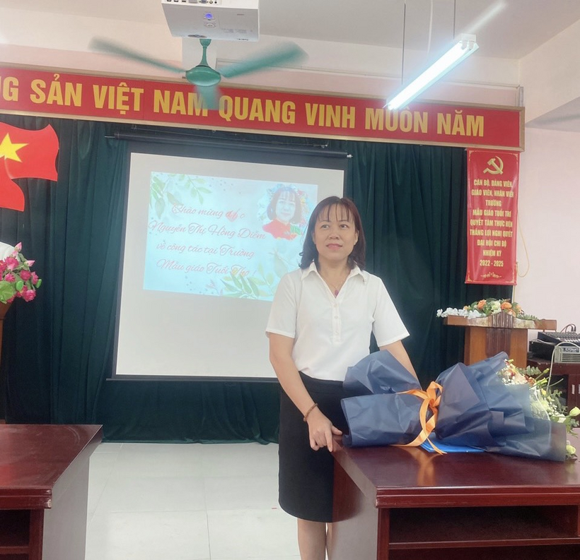 Thay mặt tập thể nhà trường BGH, công đoàn kính tặng đ/c Hồng Diễm bó hoa tươi thắm, chúc đ/c về công tác tại trường MG Tuổi Thơ phát huy sở trường, chung tay cùng nhà trường xây dựng và phát triển trường MG Tuổi Thơ ngày càng thành công trong sự nghiệp giáo dục.