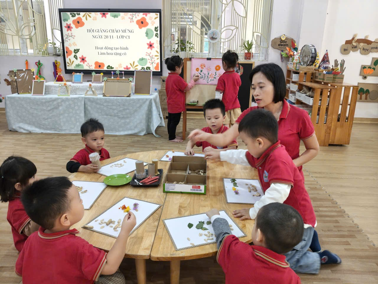 *Lớp MGB C1 với hoạt động tạo hình “Làm hoa tặng Cô”