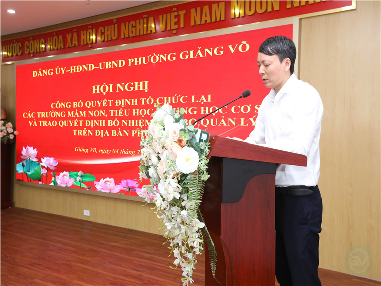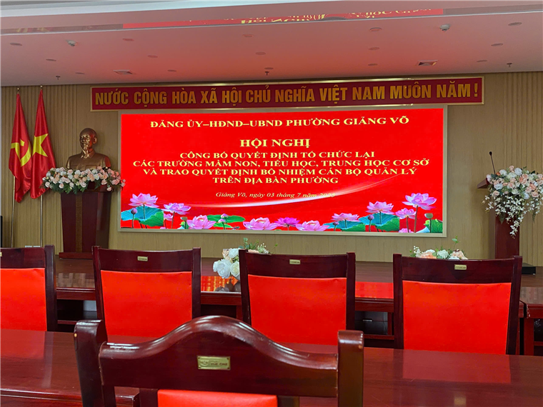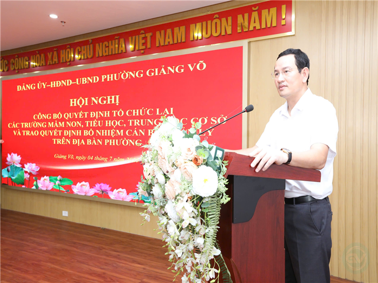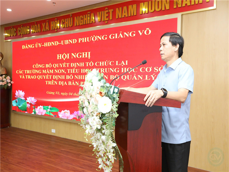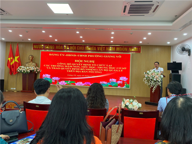 Thực hiện theo Bộ máy chính quyền hai cấp. Sáng ngày 04/07/2025 UBND Phường Giảng Võ, Thành phố Hà Nội tổ chức Hội nghị Công bố Quyết định tổ chức lại CBQL các trường Mầm non, Tiểu học, Trung học cơ sở trên địa bàn phường.
