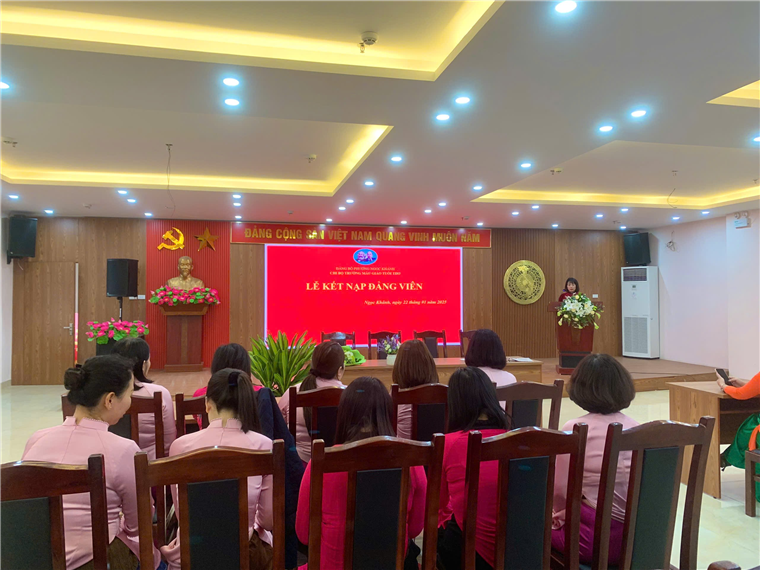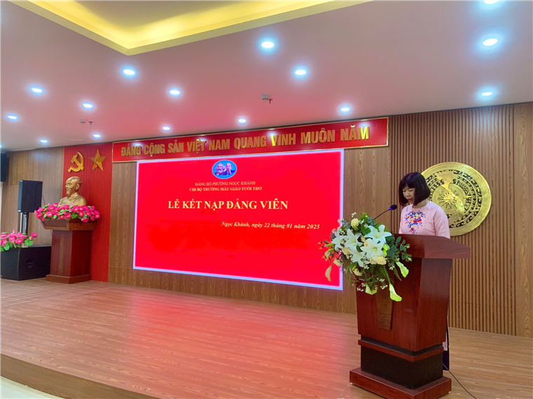 Lễ kết nạp được diễn ra trong không khí trang nghiêm, đúng trình tự, thủ tục của Điều lệ Đảng. Tại buổi lễ đồng chí Hoàng Thị Minh Thu - Bí thư Chi bộ Trường MG Tuổi Thơ đã trao Quyết định kết nạp đảng viên cho quần chúng ưu tú và phân công nhiệm vụ cho Đảng viên mới, phân công đồng chí Đảng viên chính thức trong Chi bộ tiếp tục giúp đỡ đồng chí đảng viên mới trong 12 tháng thử thách. Đồng thời đề nghị đồng chí tiếp tục giữ gìn phẩm chất đạo đức, lối sống, nhiệt tình, năng động trong công tác góp phần cùng Chi bộ hoàn thành tốt các nhiệm vụ được giao.