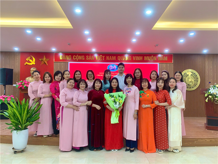 Chi ủy trường MG Tuổi Thơ tặng hoa chúc mừng đ/c Nguyễn Thị Phượng