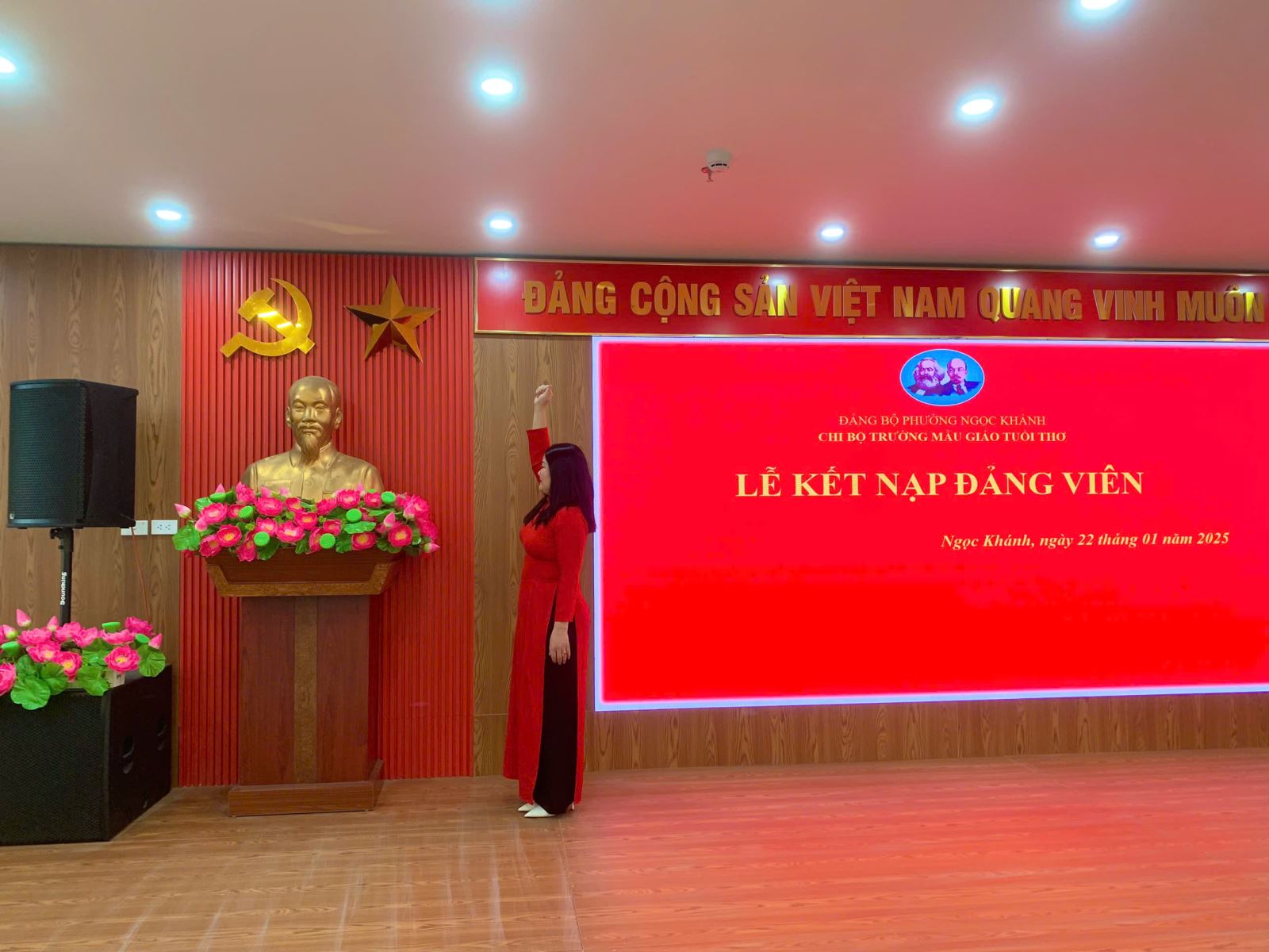 Sáng ngày 22/01/2025, Chi bộ Trường MG Tuổi Thơ đã tổ chức Lễ kết nạp đảng viên mới cho quần chúng ưu tú là: Nguyễn Thị Phượng
