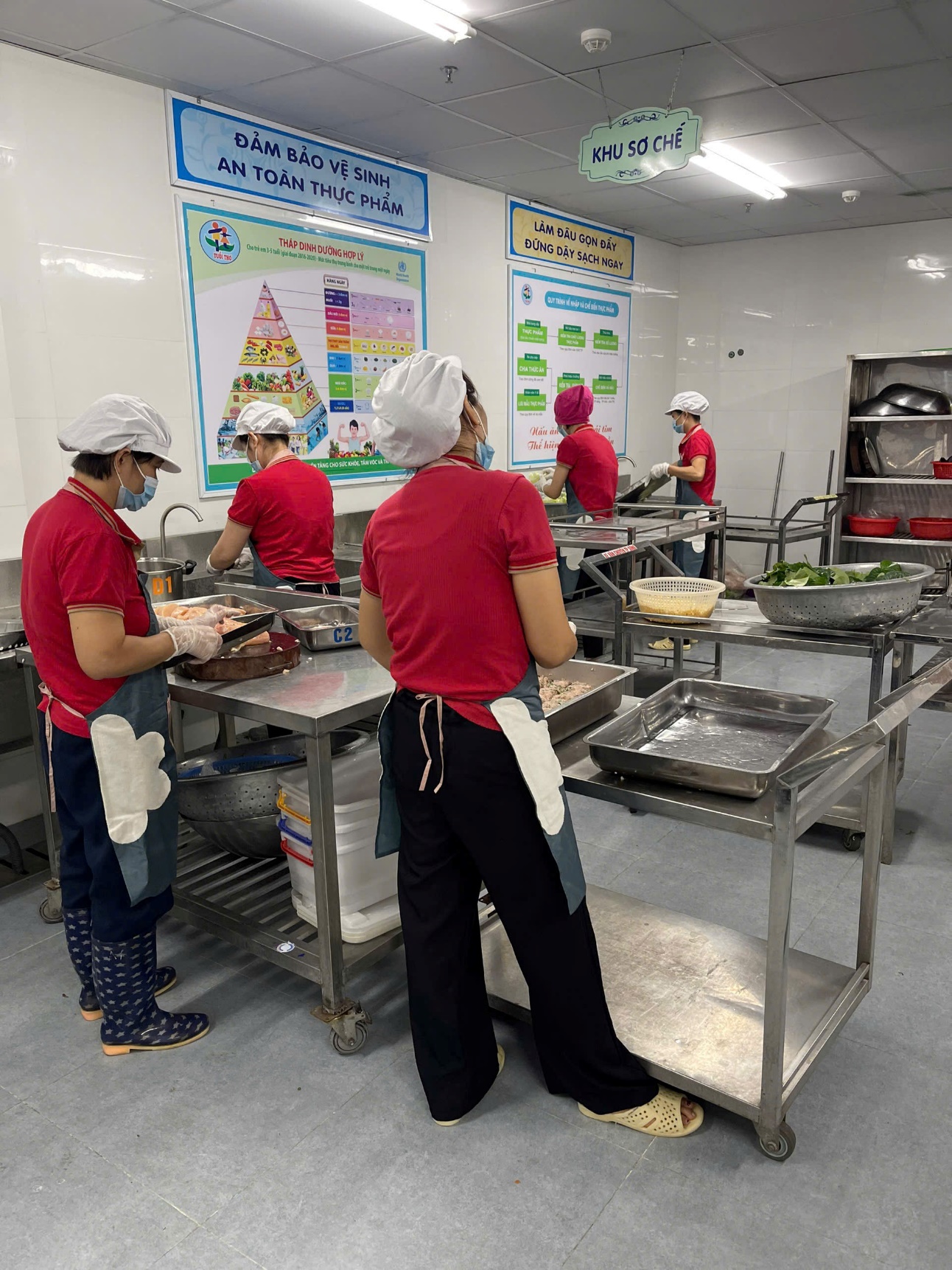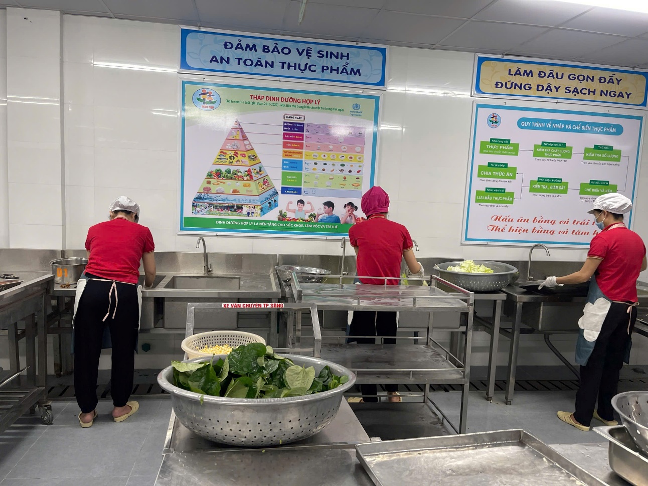 *Đoàn dự các hoạt động của tổ chuyên môn nuôi dưỡng: giao nhận thực phẩm – sơ chế - chế biến – chia ăn.