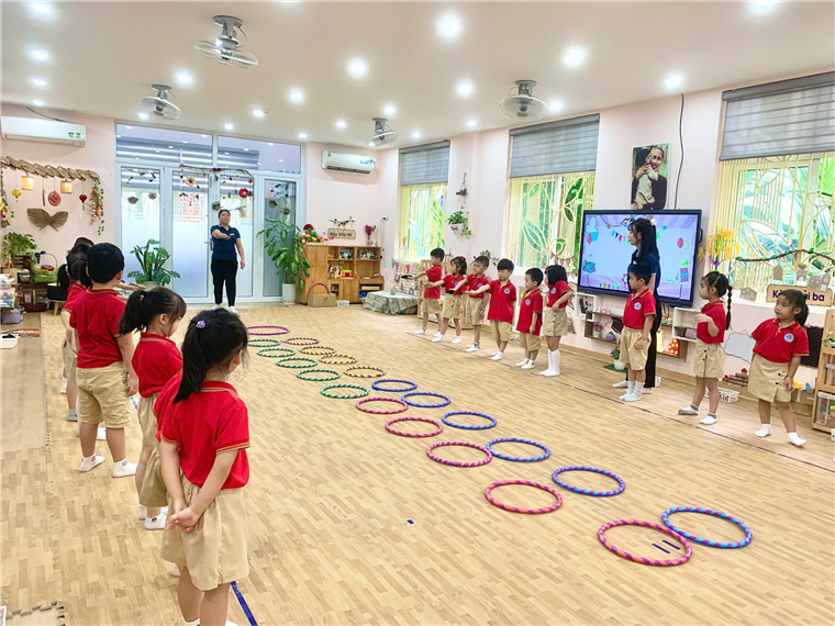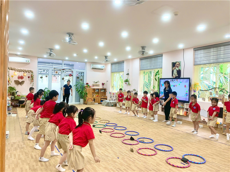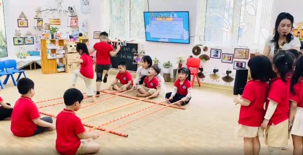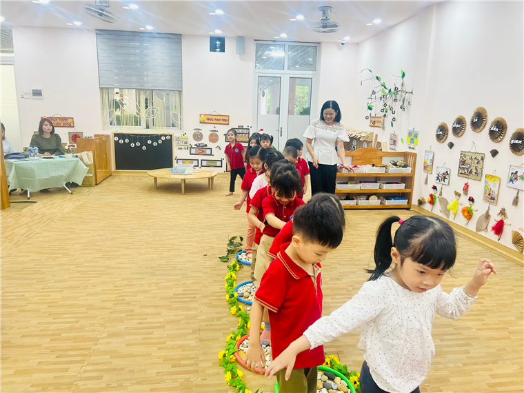 NDC: Dạy trẻ vận động theo tiết tấu chậm. (Trên nền nhạc “Inh lả ơi” - dân ca Thái.)