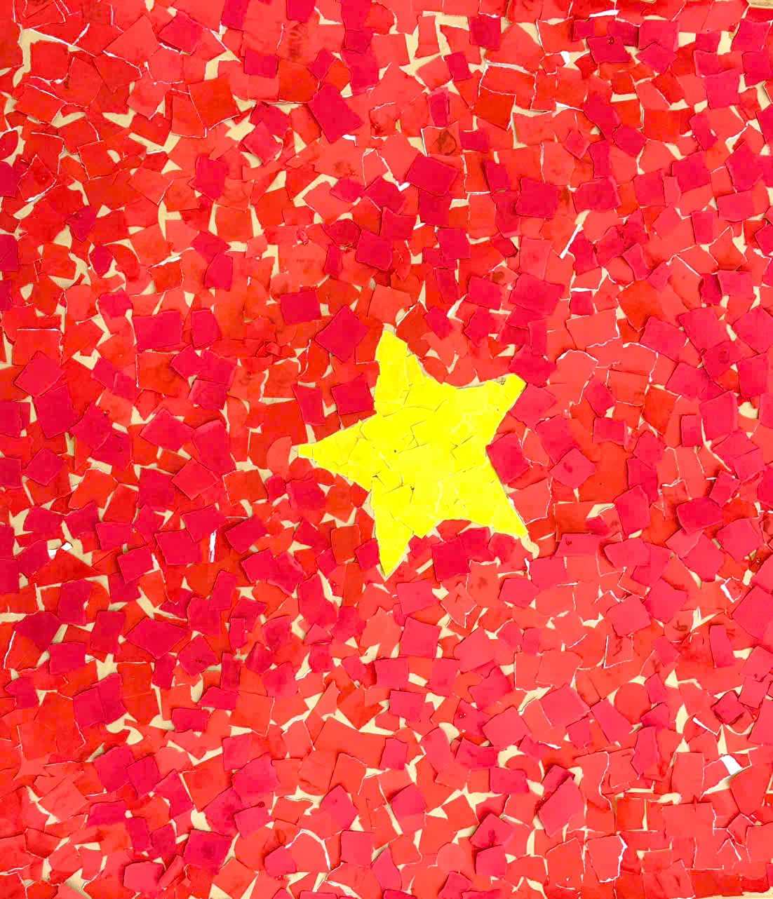 4. Thực hiện – Trẻ hào hứng tạo ra lá cờ Tổ quốc bằng đôi tay nhỏ bé, tỉ mỉ dán, cắt và trang trí.