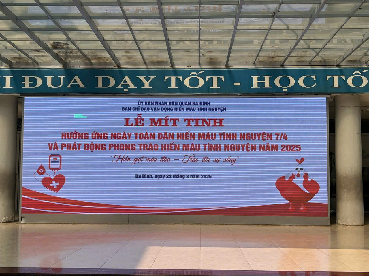 Sáng ngày 22/3/2025, tập thể cán bộ, giáo viên, nhân viên nhà trường đã tham gia Ngày hội Hiến máu tình nguyện tại điểm hiến máu do Ban Chỉ đạo vận động hiến máu tình nguyện quận Ba Đình tổ chức. Với tinh thần tương thân tương ái, sự tham gia nhiệt tình của các đoàn viên công đoàn, cán bộ, nhân viên nhà trường không chỉ thể hiện trách nhiệm với cộng đồng mà còn lan tỏa giá trị nhân văn cao đẹp của nghĩa cử hiến máu cứu người.