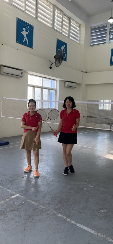 2 vận động viên tham gia thi đấu Cầu lông cô giáo: Nguyễn Định và Tuyết Lệ.