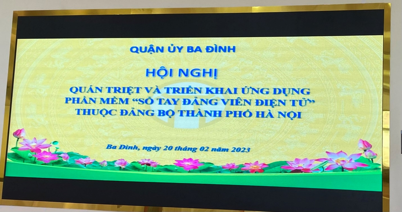 Thực hiện Kế hoạch số 133-KH/QU ngày 08/02/2021 của Quận ủy, chiều ngày 20/02/2023 tại Trung tâm Chính trị Quận (180 phố Trấn Vũ ) Ban thường vụ Quận ủy tổ chức hội nghị quán triệt và triển khai ứng dụng phần mềm “Sổ tay đảng viên điện tử” thuộc Đảng bộ thành phố Hà Nội và phần mềm “Điều hành tác nghiệp quản lý đảng viên”