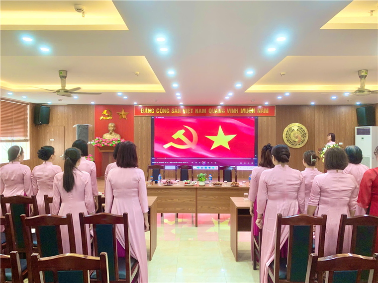 Đ/c Bích Ngọc trao quyết định kết nạp Đảng viên cho đ/c Nguyễn Thị Thu Hà