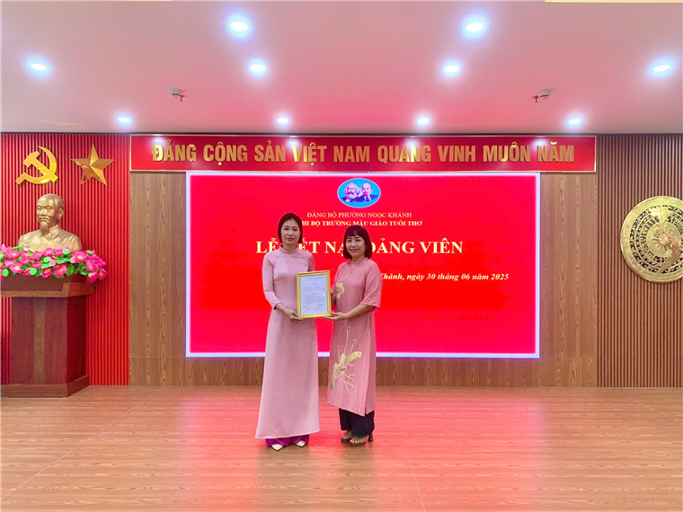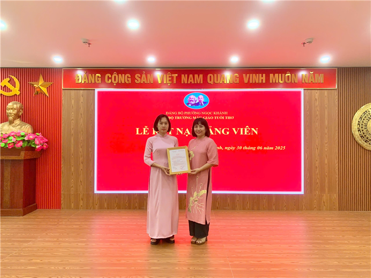 Sáng ngày 30/06/2025, Chi bộ Trường MG Tuổi Thơ đã tổ chức Lễ kết nạp đảng viên mới cho hai quần chúng ưu tú là: Nguyễn Thị Thu Hà và Nguyễn Thị Thanh Vân