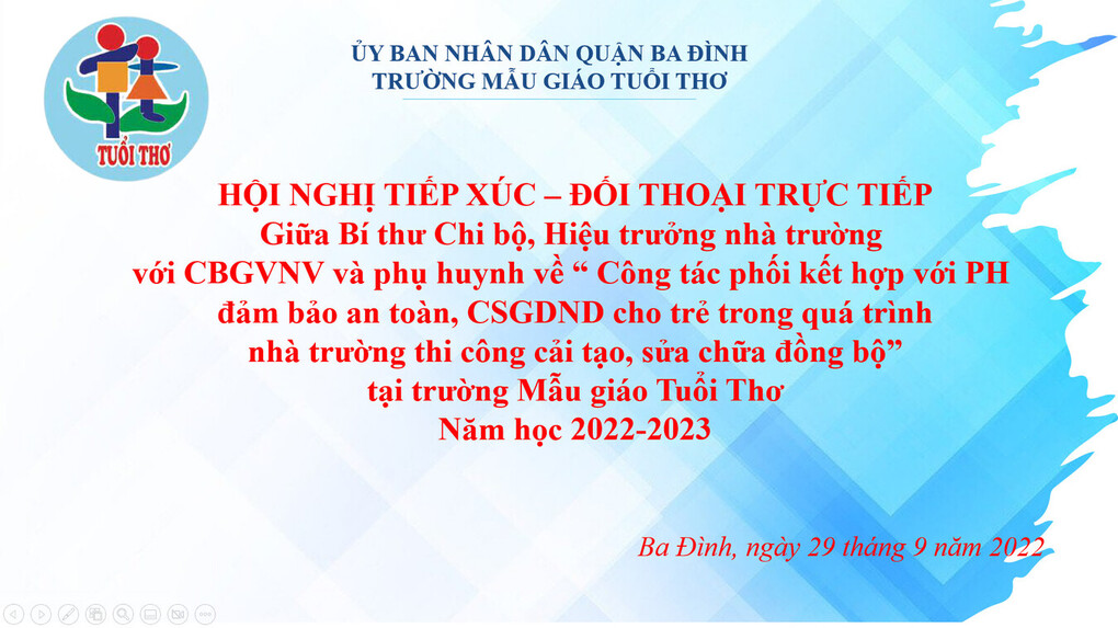 Trường Mẫu giáo Tuổi Thơ tổ chức “Hội nghị tiếp xúc, đối thoại trực tiếp” và “Hội nghị Cha mẹ học sinh” năm học 2022-2023.