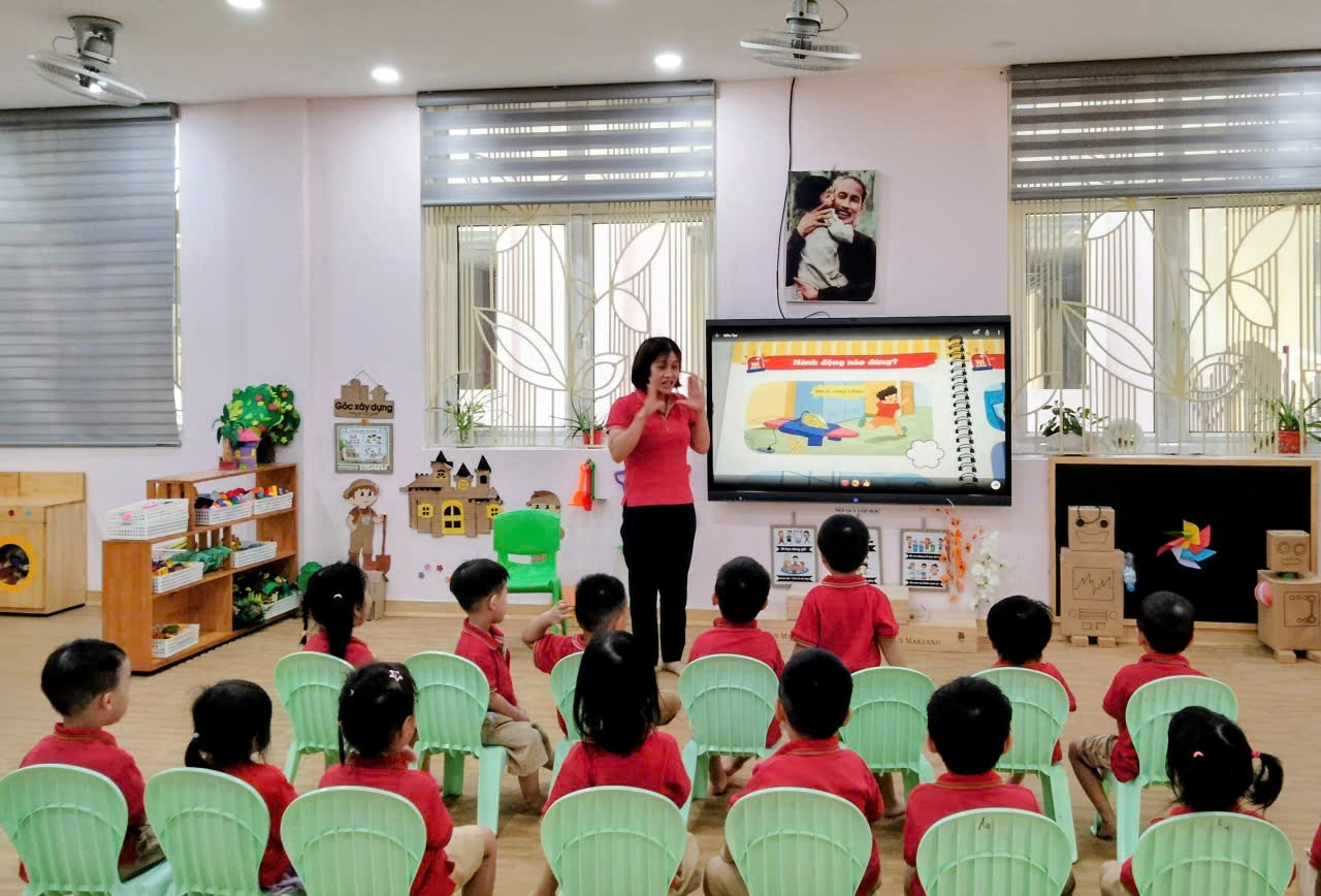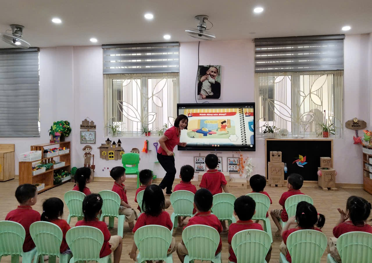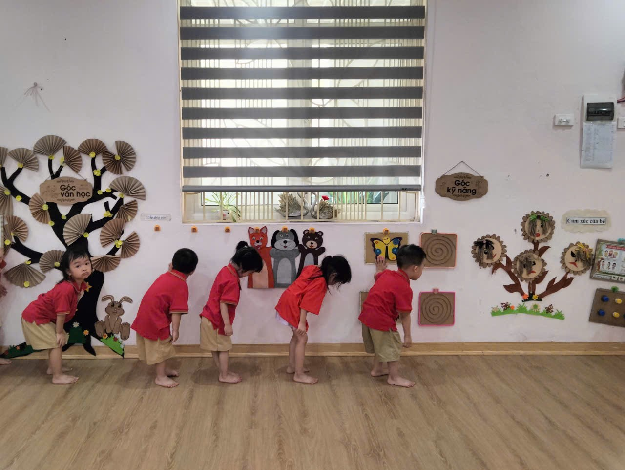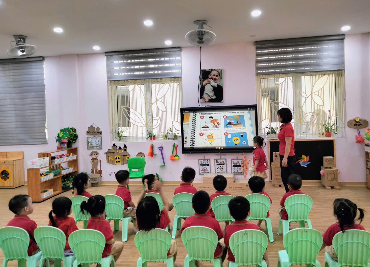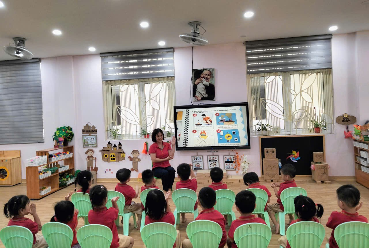 Ngay từ những ngày đầu quay trở lại trường học, các con không chỉ tiếp thu kiến thức qua các hoạt động học học như: làm quen với toán, làm quen văn học, làm quen với âm nhạc, phát triển vận động, khám phá… mà các con con được tham gia vào các hoạt động rèn kỹ năng sống.