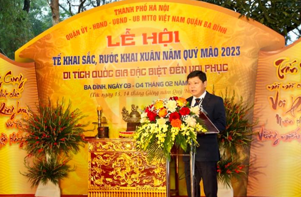 Phát biểu khai ấn lễ hội, Chủ tịch UBND quận Ba Đình Tạ Nam Chiến cho biết, năm 2023, quận Ba Đình vui mừng tổ chức lễ hội với vị thế được UBND Thành phố công nhận là một trong những lễ hội truyền thống tiêu biểu của Thủ đô Hà Nội, ngay sau khi Đền Voi Phục được xếp hạng di tích Quốc gia đặc biệt. Đây là niềm tự hào của cán bộ, đảng viên và các tầng lớp Nhân dân quận Ba Đình.