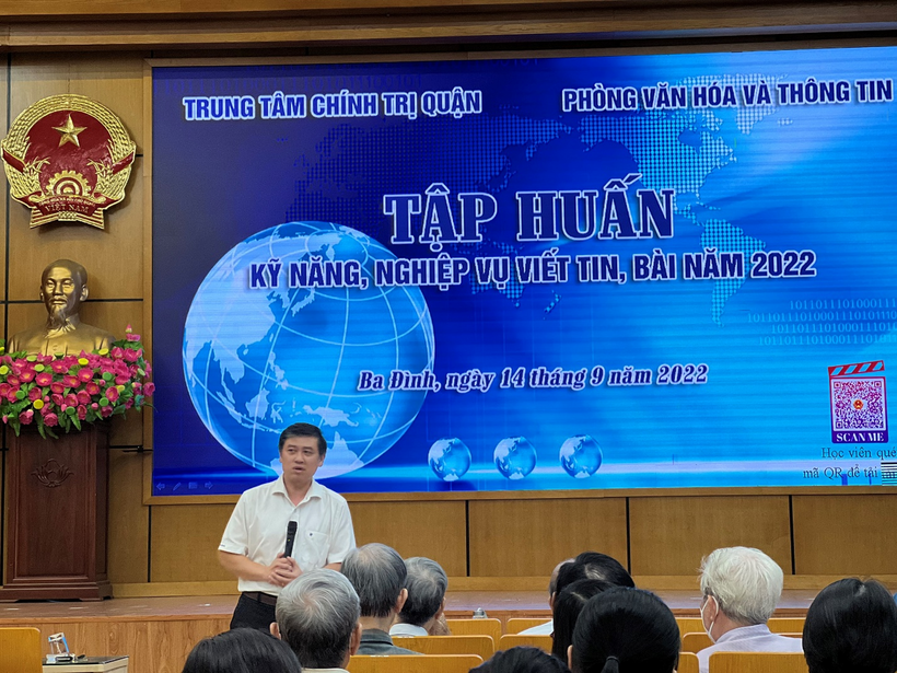 Chiều ngày 14/9 tại UBND quận Ba Đình diễn ra “Lớp tập huấn kỹ năng, nghiệp vụ viết tin bài năm 2022” cho các đồng chí phụ trách viết tin bài khối trường Mầm non, Tiểu học, THCS thuộc quận.