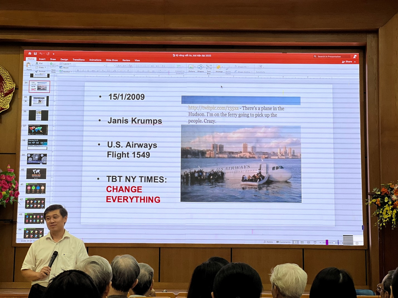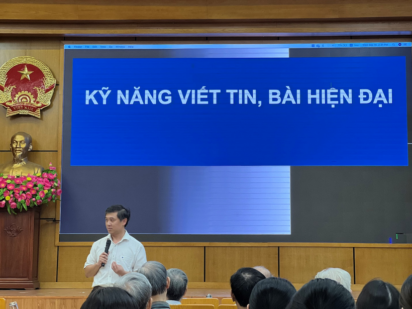 Chủ trì buổi tập huấn có thạc sĩ Vũ Thế Cường – Giảng viên Khoa Phát thanh-Truyền hình (Học viện Báo chí và Tuyên truyền) giới thiệu về xu thế phát triển của báo điện tử trên thế giới cũng như trong nước, các kĩ năng quan trọng khi viết tin bài trên Cổng thông tin điện tử…