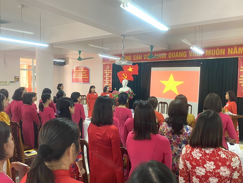 Đoàn chủ tịch gồm 4 đồng chí: Đ/c Nguyễn Thu Hiền – Bí thư Chi bộ, Hiệu trưởng; 2 đ/c Phó hiệu trưởng: Bích Ngọc, Hồng Diễm. Đ/c Nguyễn Bích Thủy – Chủ tịch Công đoàn; đồng chí Nguyễn Phượng (Thư ký)