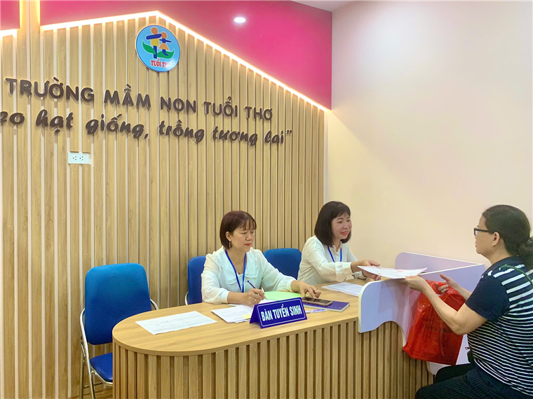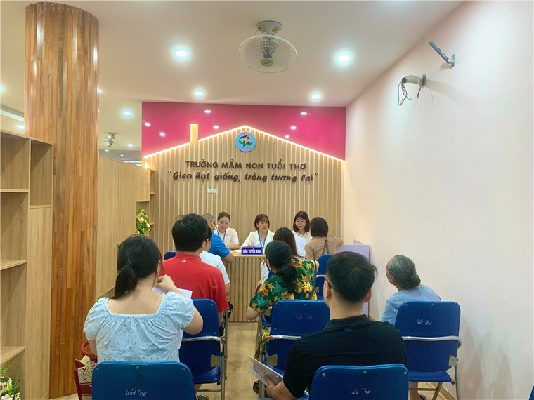 Nhà Trường đã chuẩn bị sẵn sàng mọi điều kiện về cơ sở vật chất và nhân lực để chào đón các bậc phụ huynh đến đăng ký nhập học. Ngay từ sáng sớm, các thành viên của Ban tuyển sinh đã có mặt đầy đủ để đón tiếp phụ huynh và các bạn nhỏ đến tìm hiểu, đăng ký nhập học. Tại khu vực tuyển sinh, các đồng chí trong Hội đồng tuyển sinh đã hướng dẫn tận tình mang đến cảm giác yên tâm, gần gũi cho các bậc phụ huynh. Hội đồng tuyển sinh nhà trường luôn sẵn sàng giải đáp mọi thắc mắc, hỗ trợ phụ huynh hoàn thiện thủ tục nhanh chóng và thuận tiện nhất. Sự chuẩn bị chu đáo cùng tinh thần trách nhiệm cao của tập thể cán bộ, giáo viên đã góp phần tạo nên một ngày tuyển sinh diễn ra suôn sẻ, thành công và đong đầy yêu thương.
