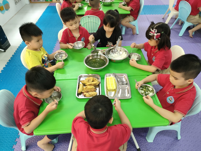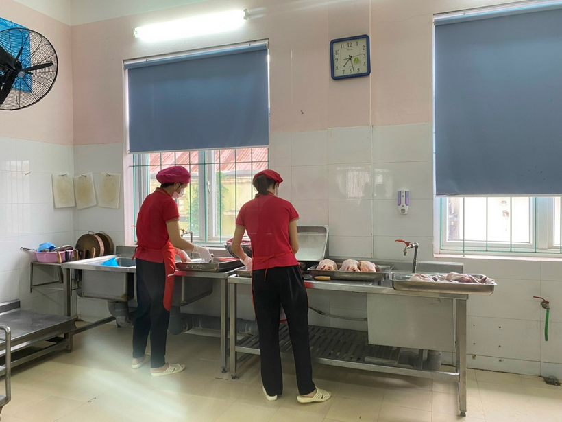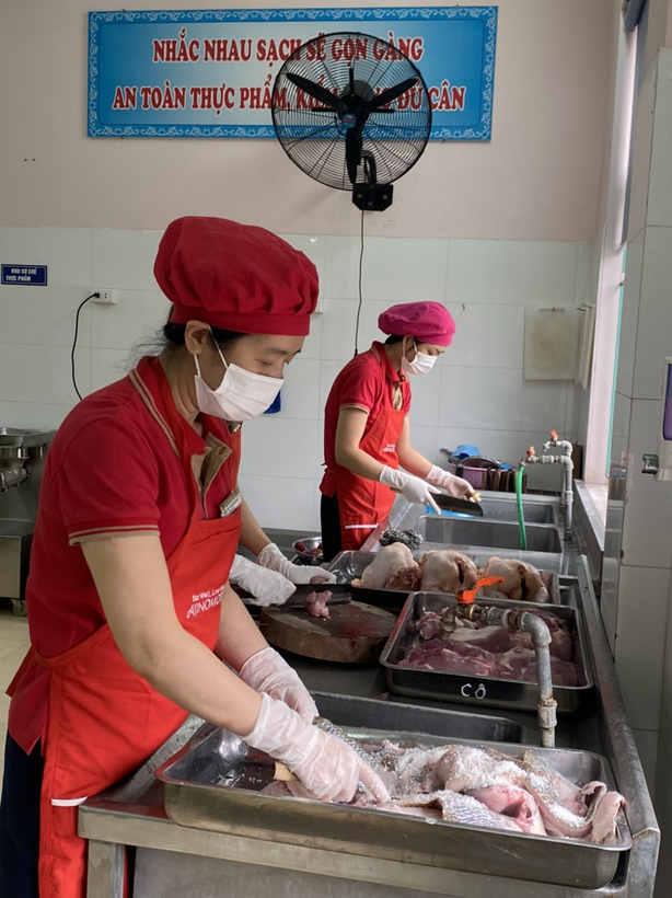 Nhà trường luôn chú trọng kiểm tra, giám sát từ khâu nhập thực phẩm đến khâu chế biến, khâu ra thực phẩm chín. Các nhân viên nhà bếp đều được trang bị đầy đủ kiến thức, trang phục bảo hộ đảm bảo vệ sinh khi nấu nướng.