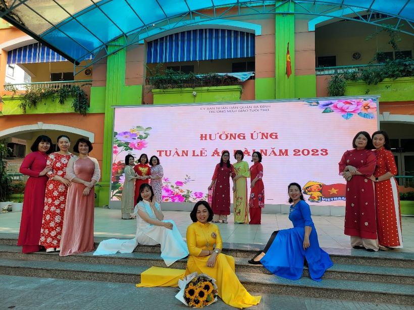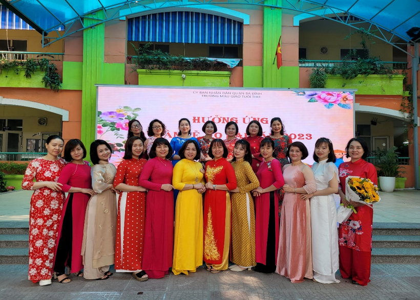 Hưởng ứng "Tuần lễ áo dài Việt Nam" và tổ chức các hoạt động nhân dịp kỉ niệm 113 năm ngày Quốc tế Phụ nữ 8/3, Trường MG Tuổi Thơ tích cực tuyên truyền, triển khai thực hiện vận động ủng hộ áo dài trong chương trình “ Tặng Áo dài – Trao yêu thương – Giữ gìn nét đẹp truyền thống” của LĐLĐ Thành phố Hà Nội, khuyến khích nữ cán bộ, công chức, viên chức và người lao động mặc áo dài trong các ngày làm việc nhằm lan tỏa vẻ đẹp áo dài nơi công tác.