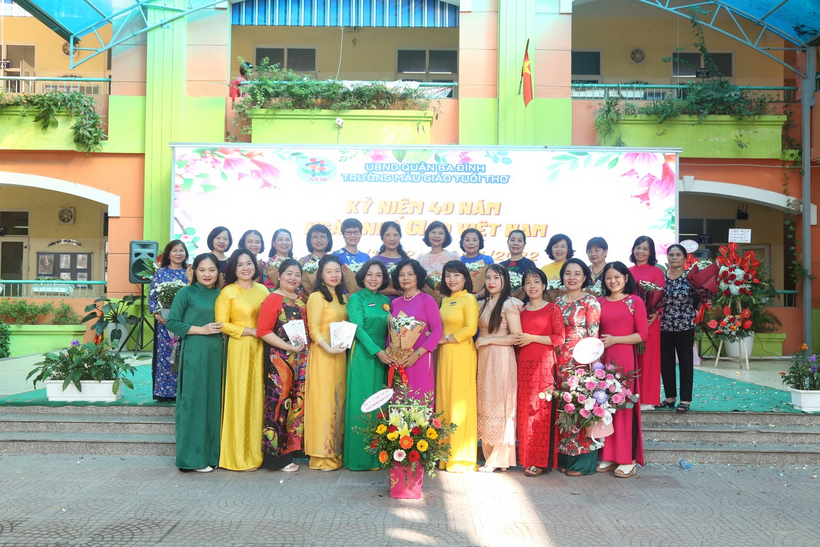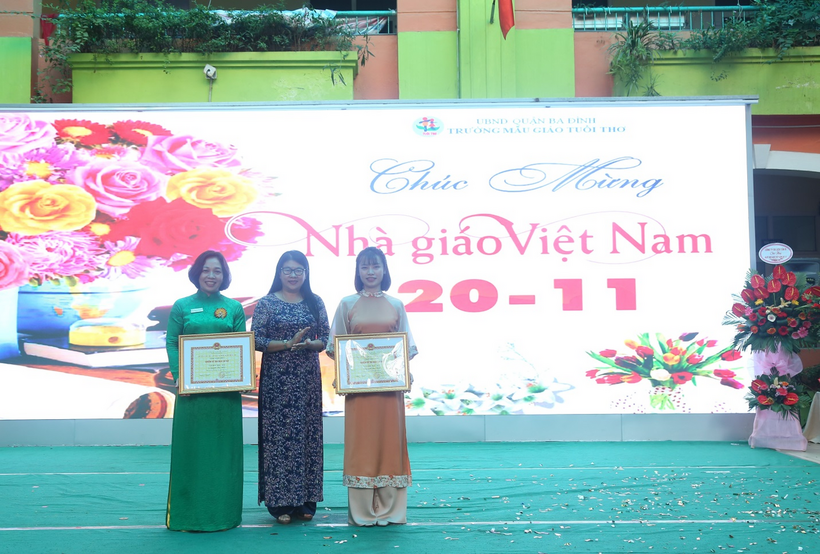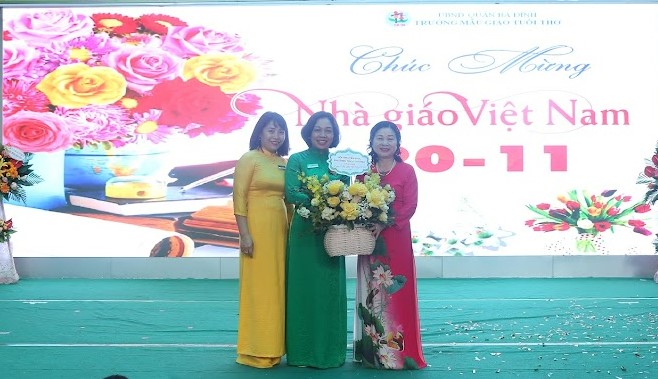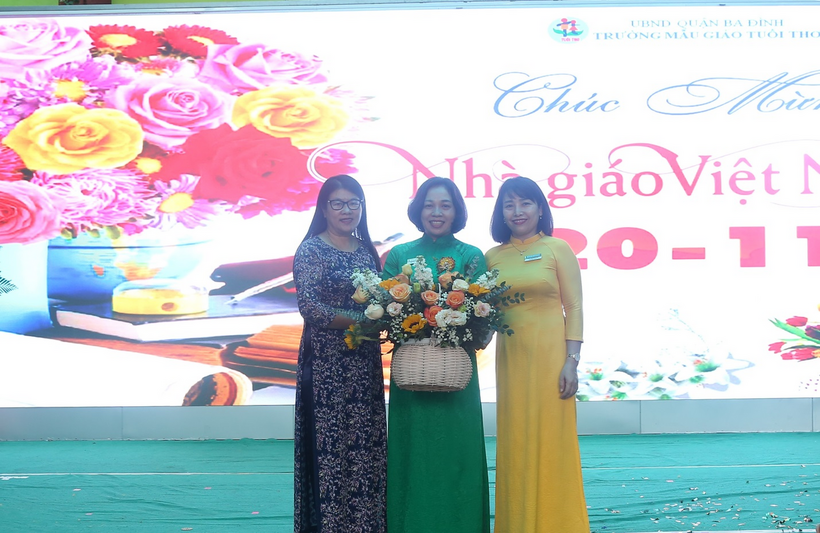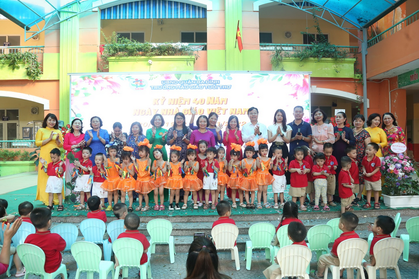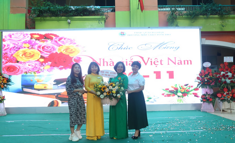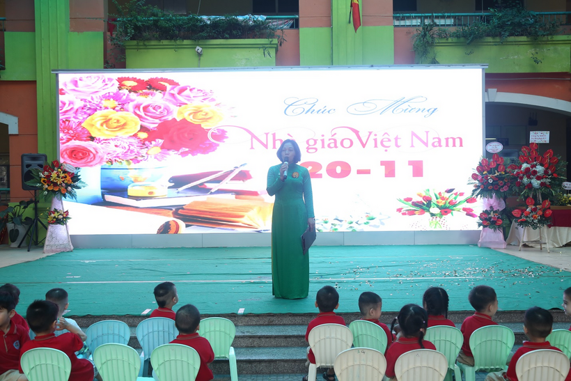 Mở đầu buổi lễ là những phát biểu ấm áp của cô Nguyễn Thu Hiền – Bí thư chi bộ - Hiệu trưởng, chia sẻ về hành trình bền bỉ với nghề của những người thầy, người cô đã và đang tận tụy với việc yêu thương chăm sóc nuôi dưỡng giáo dục trẻ, tương lai của đất nước.