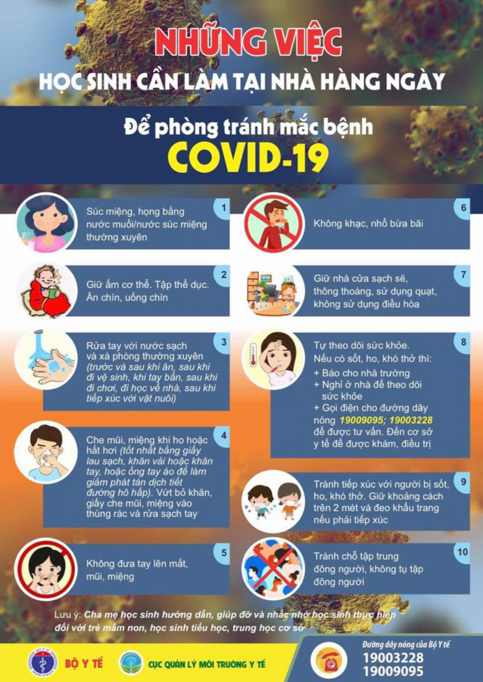 Một sô hướng dẫn phòng chống dịch bệnh khi học sinh đi học và ở nhà hàng ngày