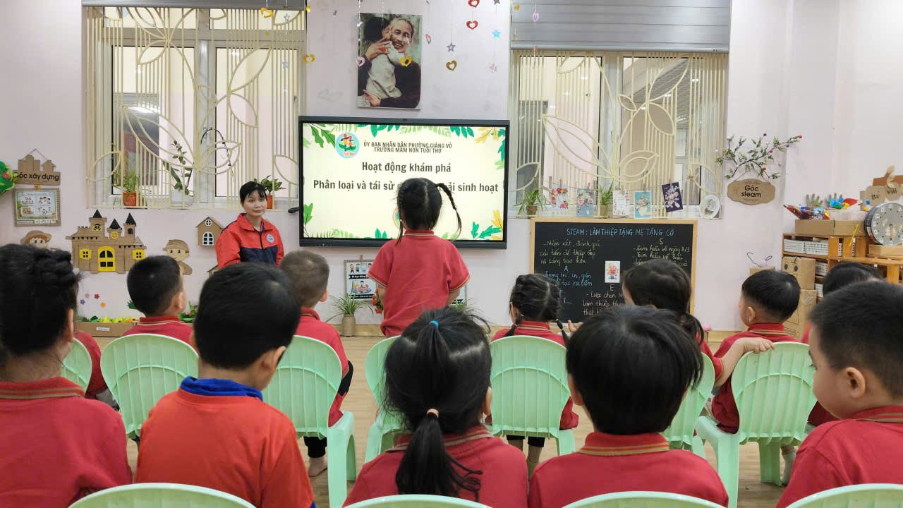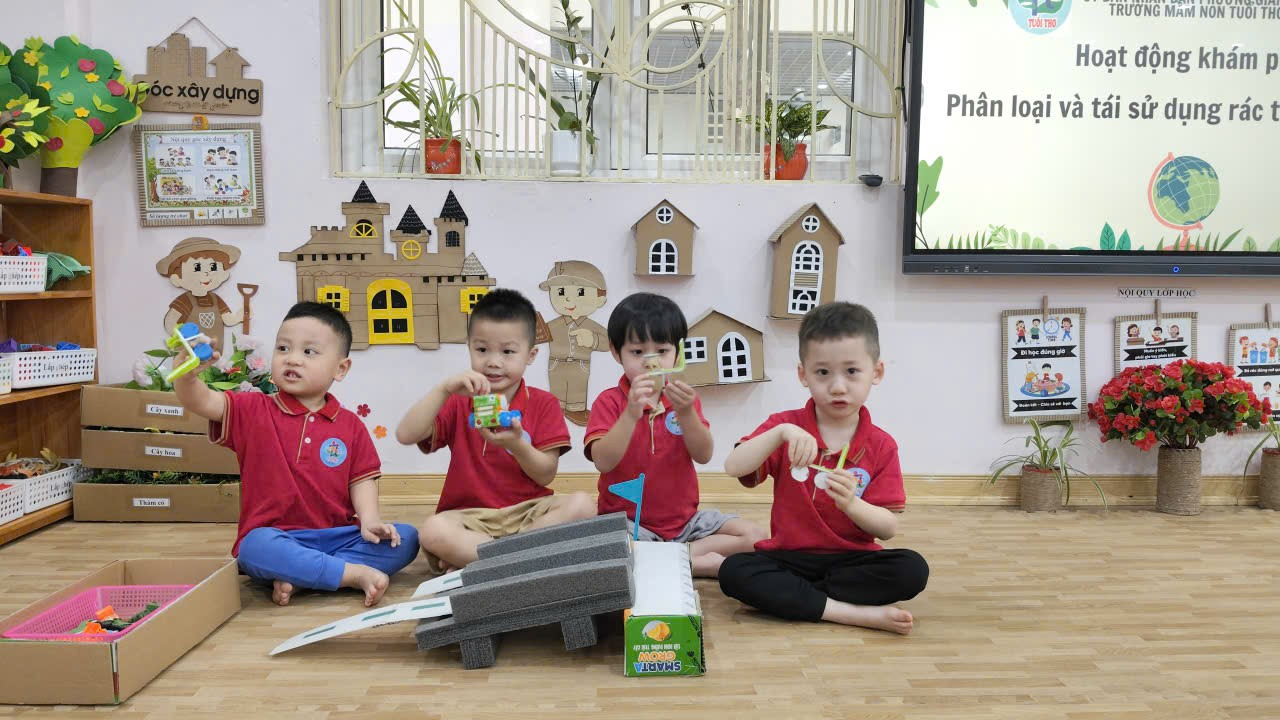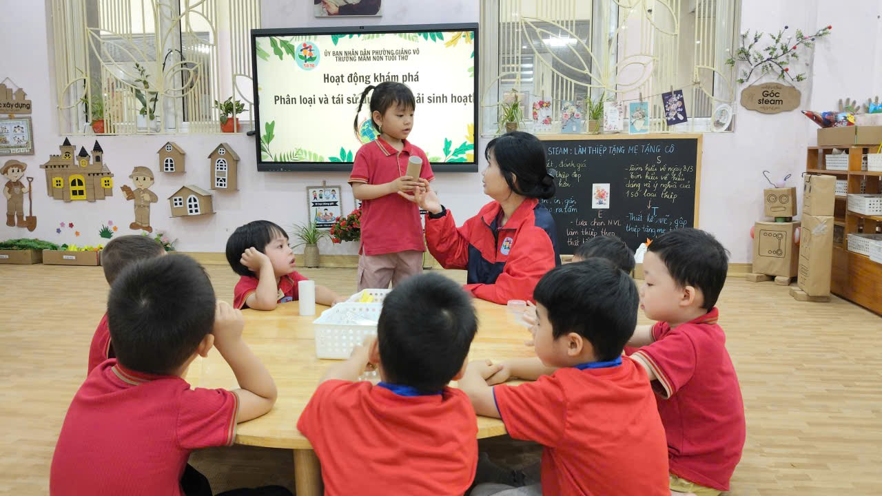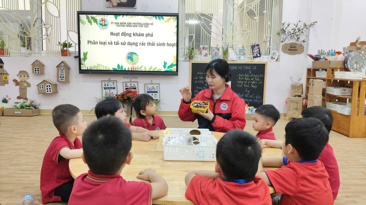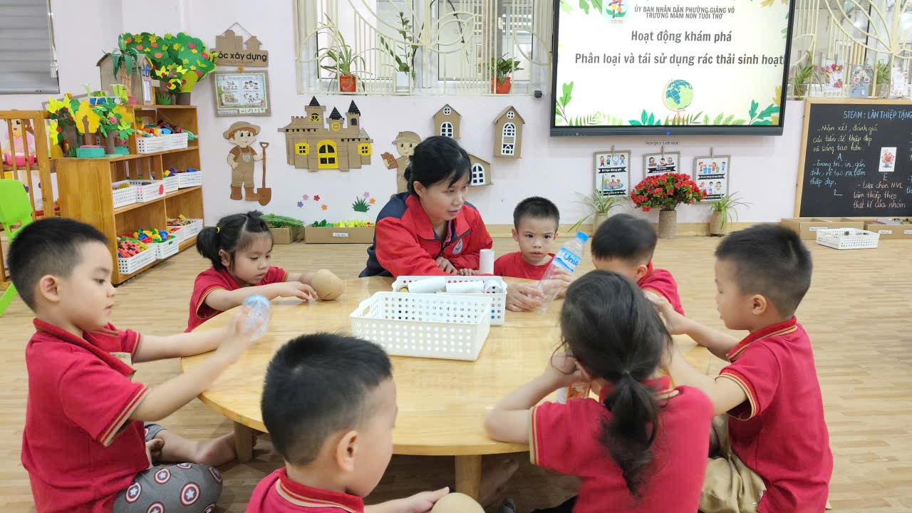 Dạy trẻ mầm non phân loại rác hữu cơ, rác tái chế... và tái sử dụng làm đồ chơi, chậu cây, con vật... giúp trẻ hình thành thói quen bảo vệ môi trường từ nhỏ. Hãy biến rác thành tài nguyên qua các hoạt động vui nhộn như "Ai bỏ rác đúng nơi" hay chế tạo đồ chơi từ vỏ hộp, chai lọ, hột hạt... giúp trẻ hiểu ý nghĩa của việc giữ gìn “Trái Đất xanh”.