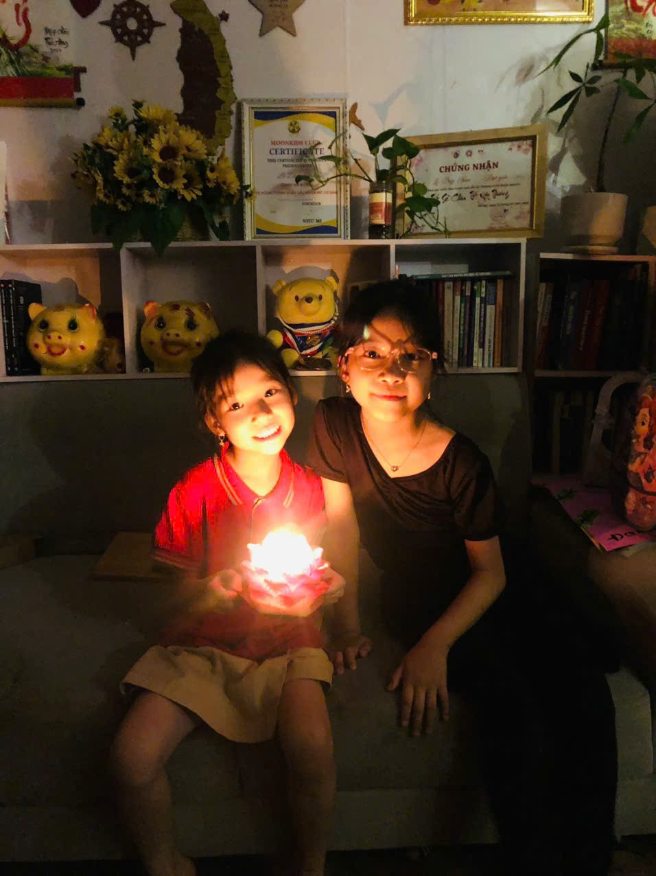 2 Chị Em con Trúc Đan lớp MGL A2 hưởng ứng giờ trái đất