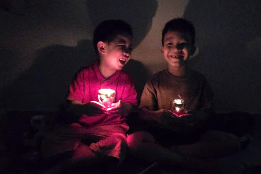 2 con Quang Khải và Duy Phúc lớp MGL A3 hưởng ứng giờ trái đất