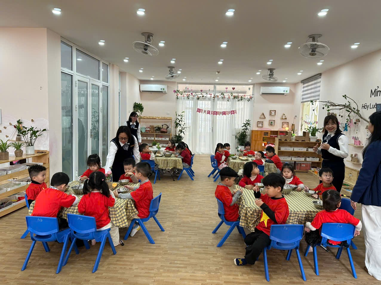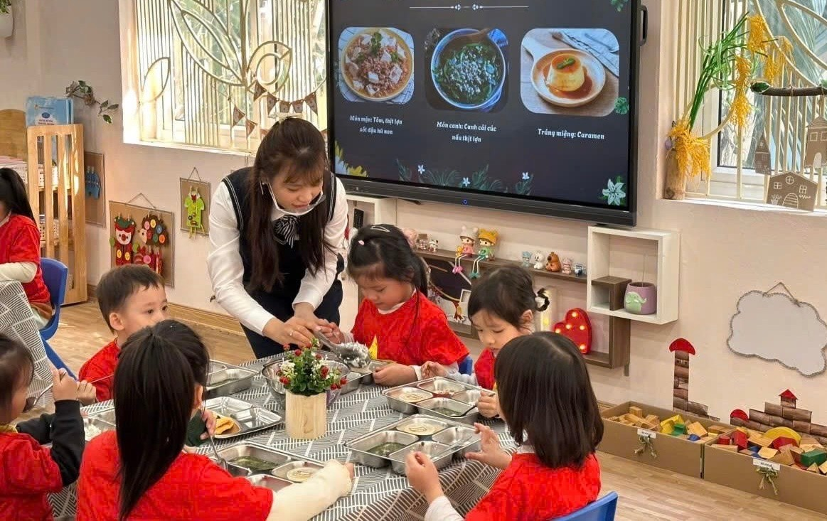 Giờ ăn trưa của các bé mẫu giáo lớn lớp A3 trường Mẫu giáo Tuổi Thơ