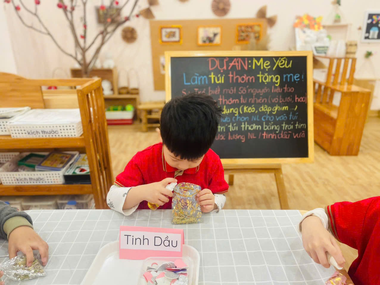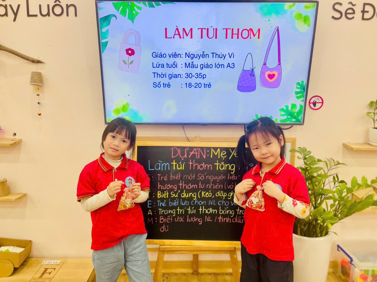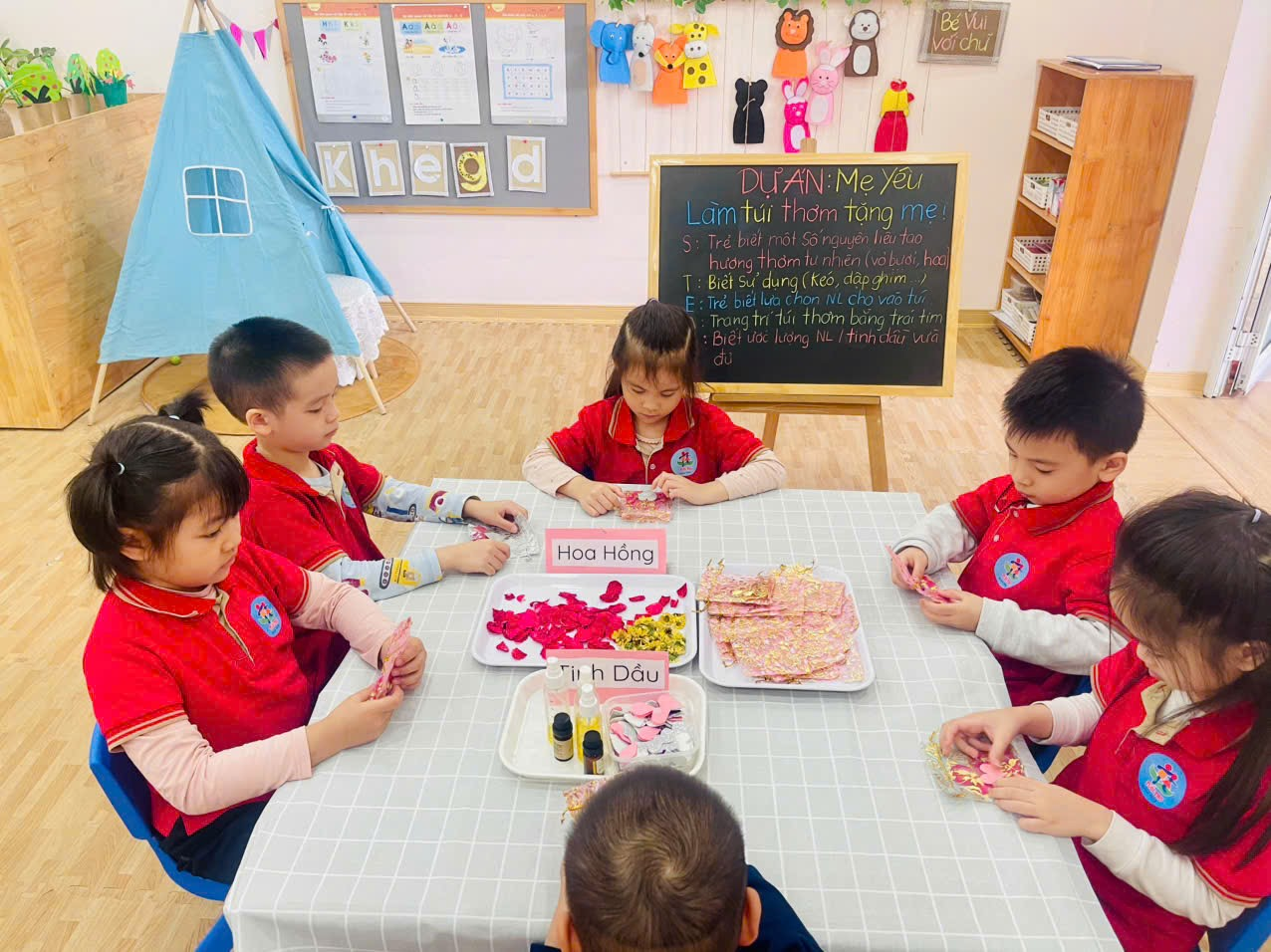 Nhân dịp ngày Quốc Tế Phụ Nữ 8/3, các cô đã tổ chức hoạt động : "Làm túi thơm tặng Mẹ!" có ứng dụng quy trình EDP, hoạt động diễn ra rất hứng thú, vui vẻ và sáng tạo.