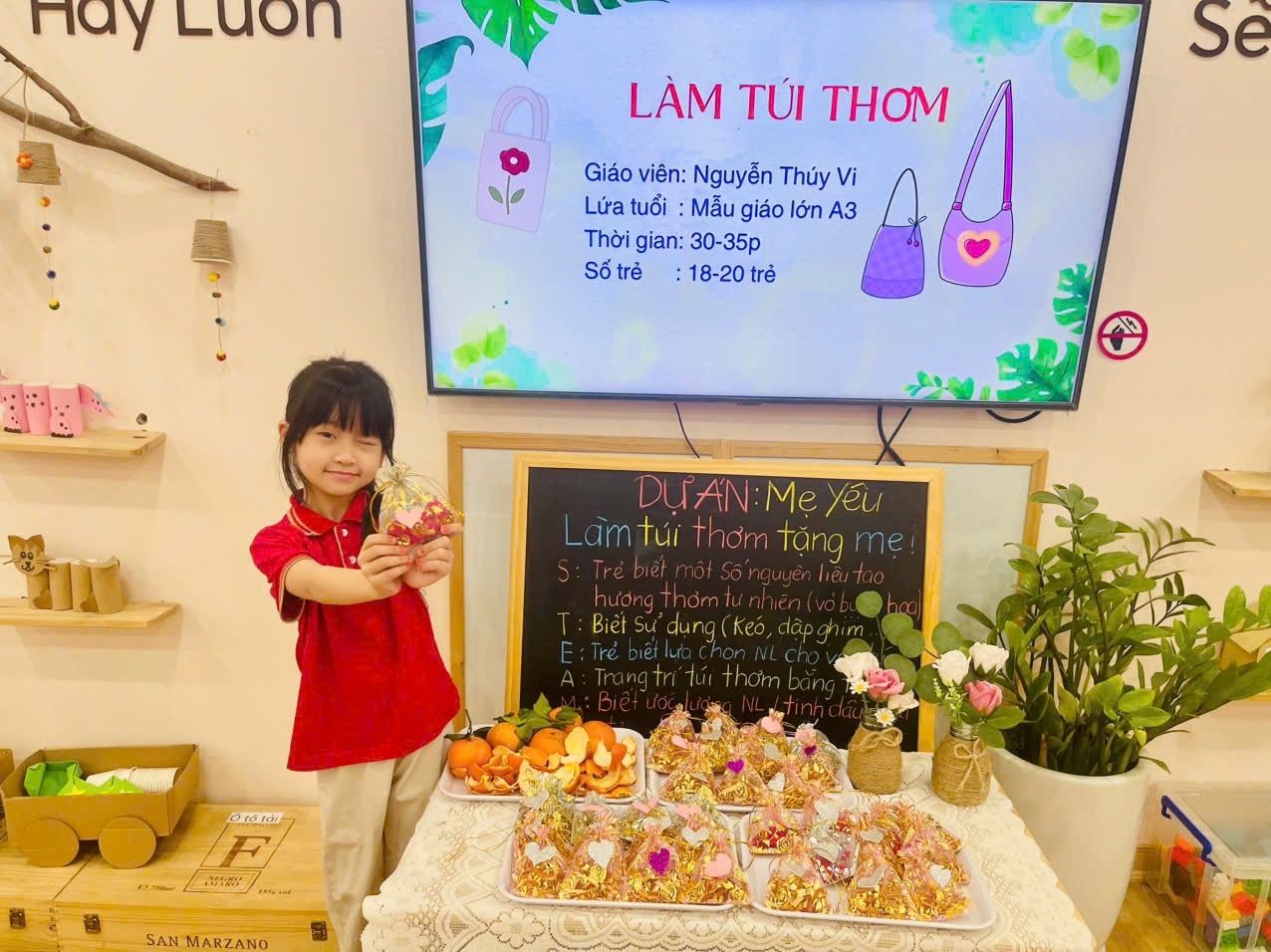 - Cho trẻ trưng bày sản phẩm.
