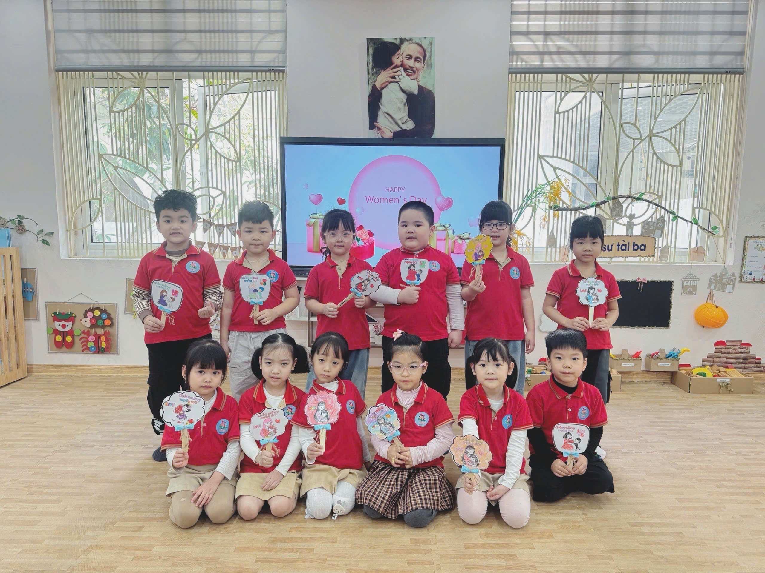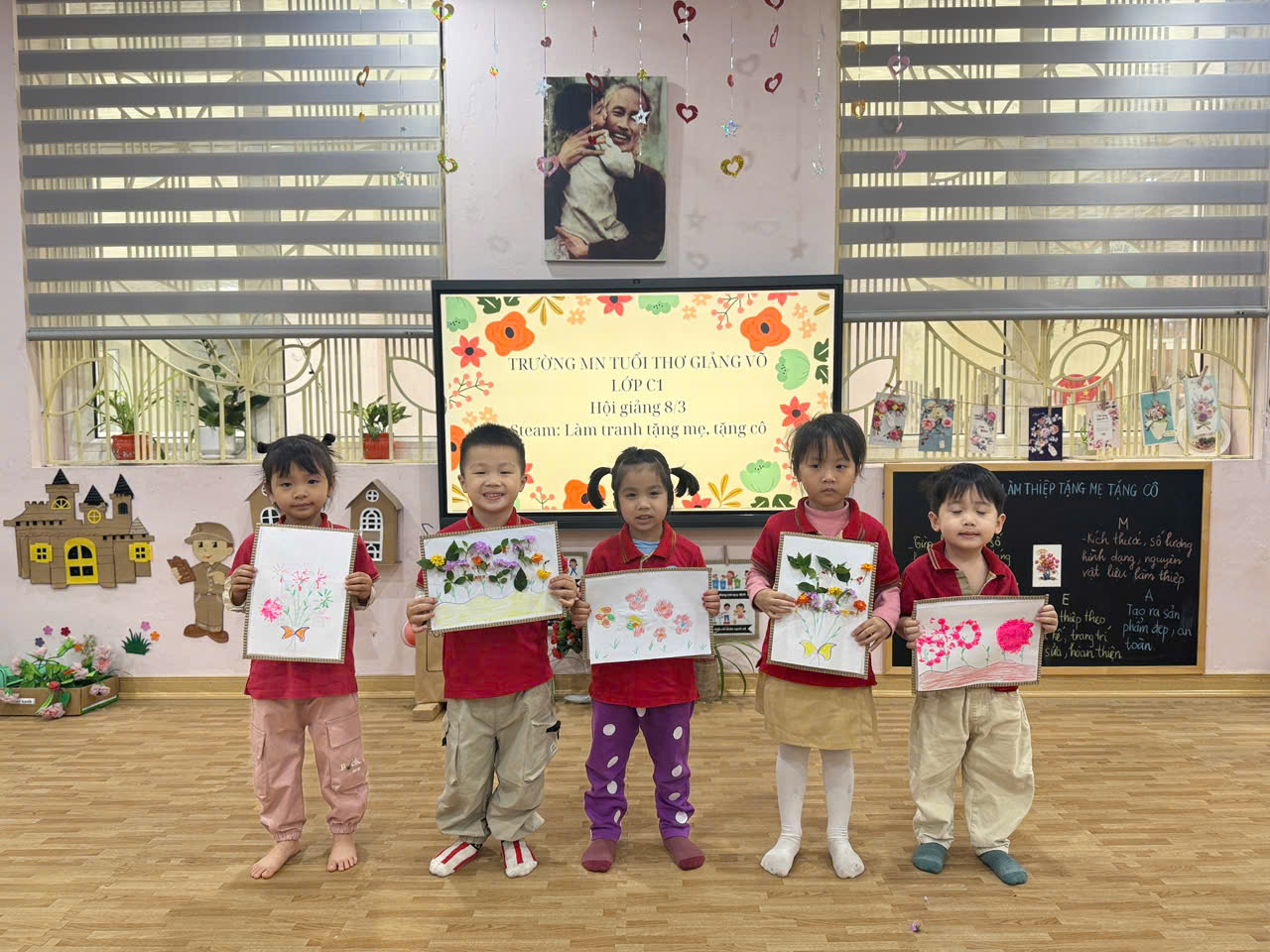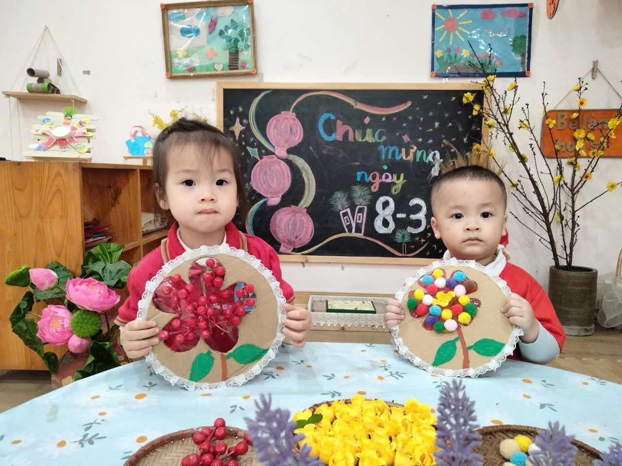 Bằng đôi bàn tay nhỏ xinh, các bé đã tự tay làm những tấm thiệp xinh xắn, tô màu những bông hoa rực rỡ và tập nói những lời chúc ngọt ngào. Mỗi sản phẩm tuy còn giản dị nhưng chứa đựng tình cảm trong sáng, hồn nhiên và chân thành của các con.