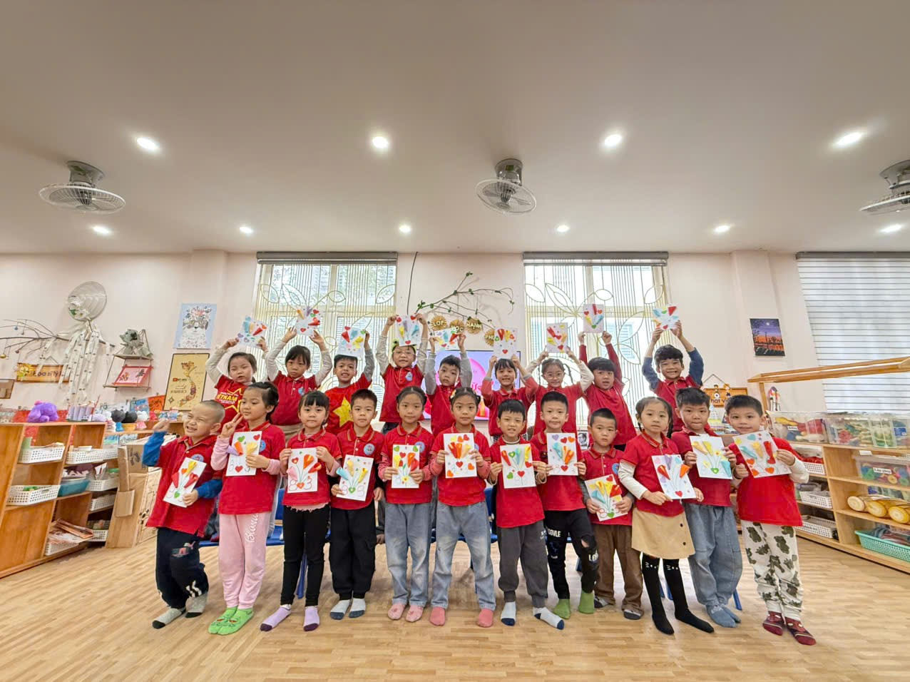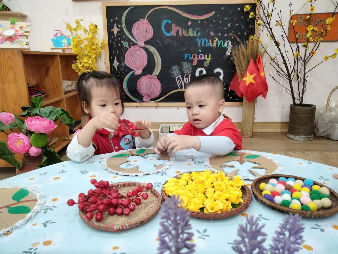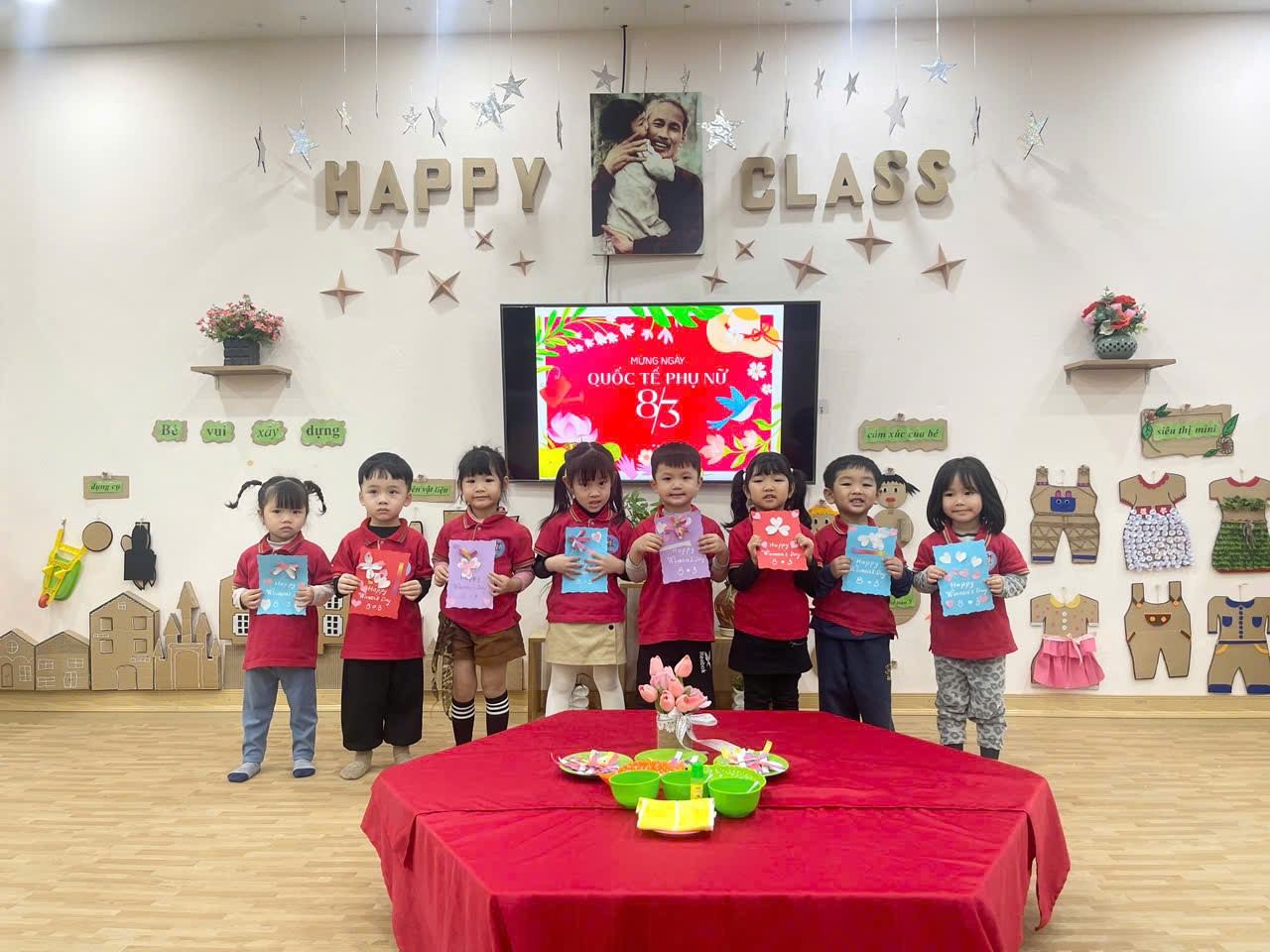 Bằng đôi bàn tay nhỏ xinh, các bé đã tự tay làm những tấm thiệp xinh xắn, tô màu những bông hoa rực rỡ và tập nói những lời chúc ngọt ngào. Mỗi sản phẩm tuy còn giản dị nhưng chứa đựng tình cảm trong sáng, hồn nhiên và chân thành của các con.