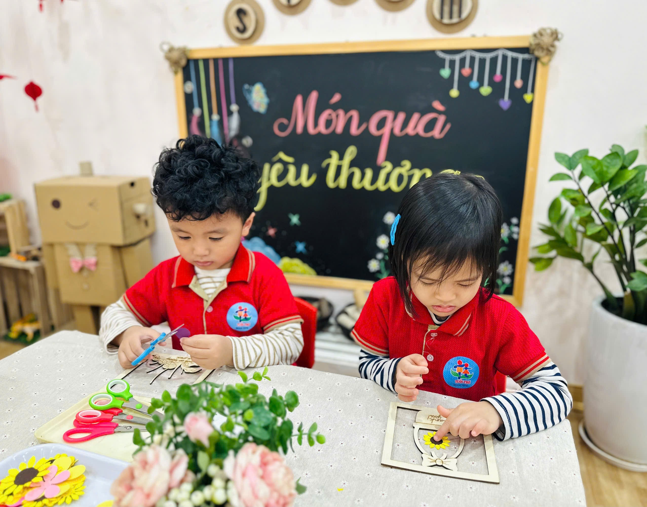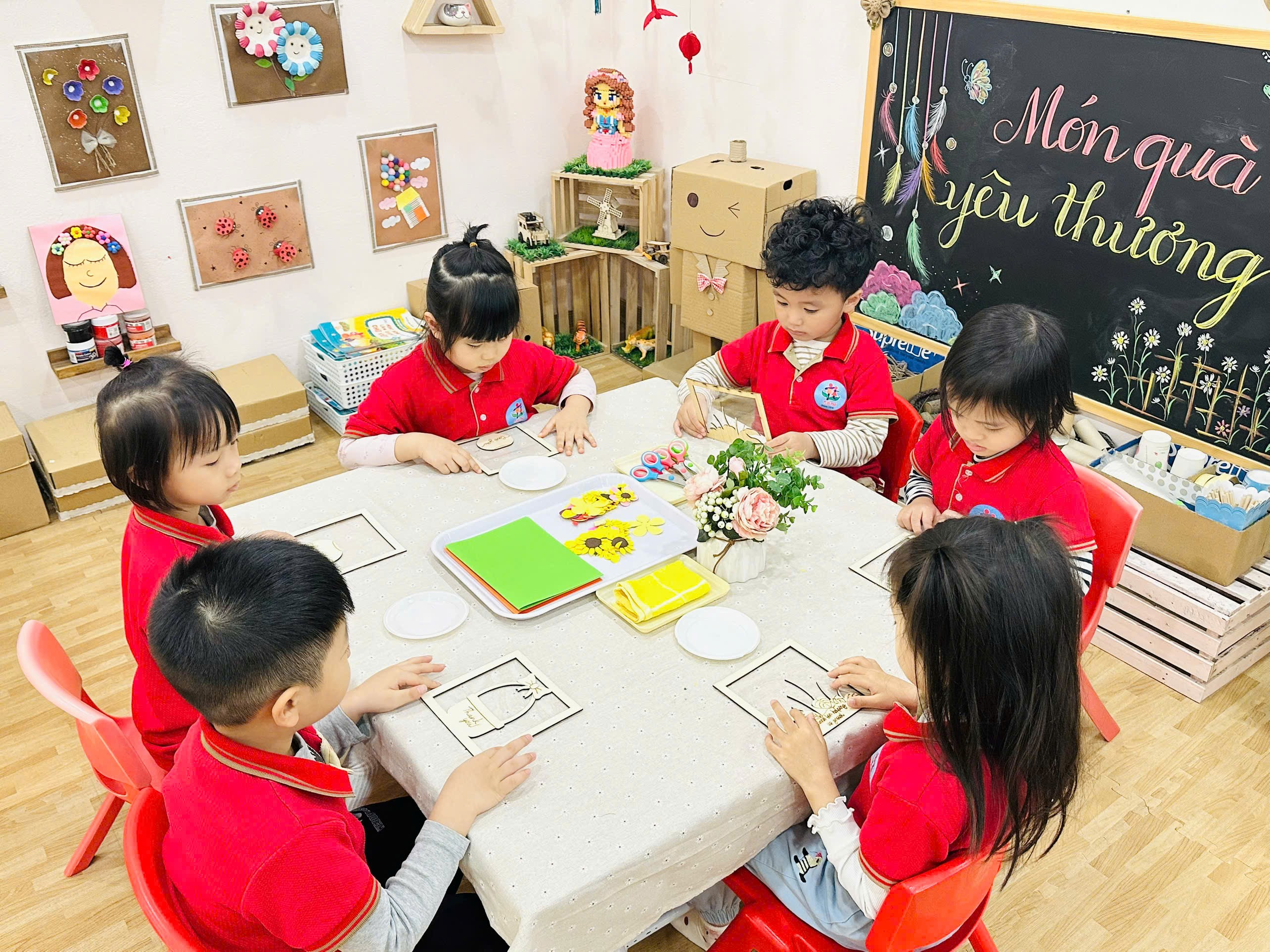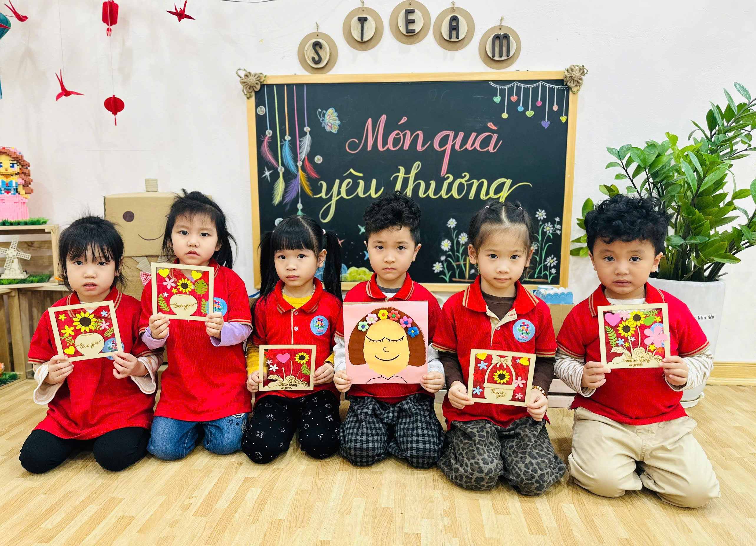 Các Bé lớp MGN B1 trang trí khung tranh tặng Bà, tặng Mẹ, tặng Cô...