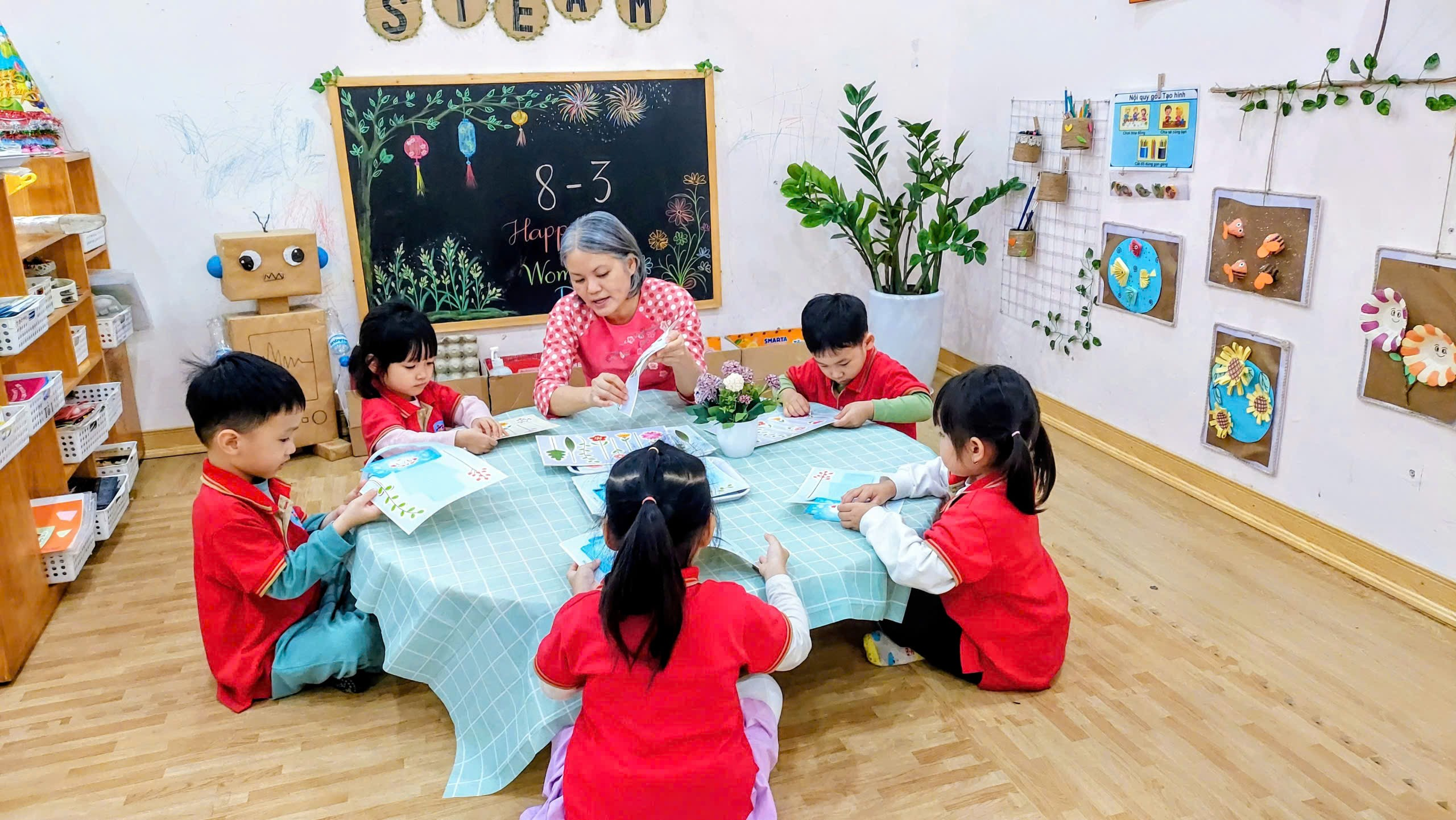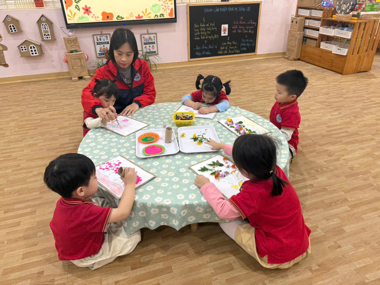 Các Bé lớp MGB C2 làm thiệp tặng Bà, tặng Mẹ, tặng Cô...