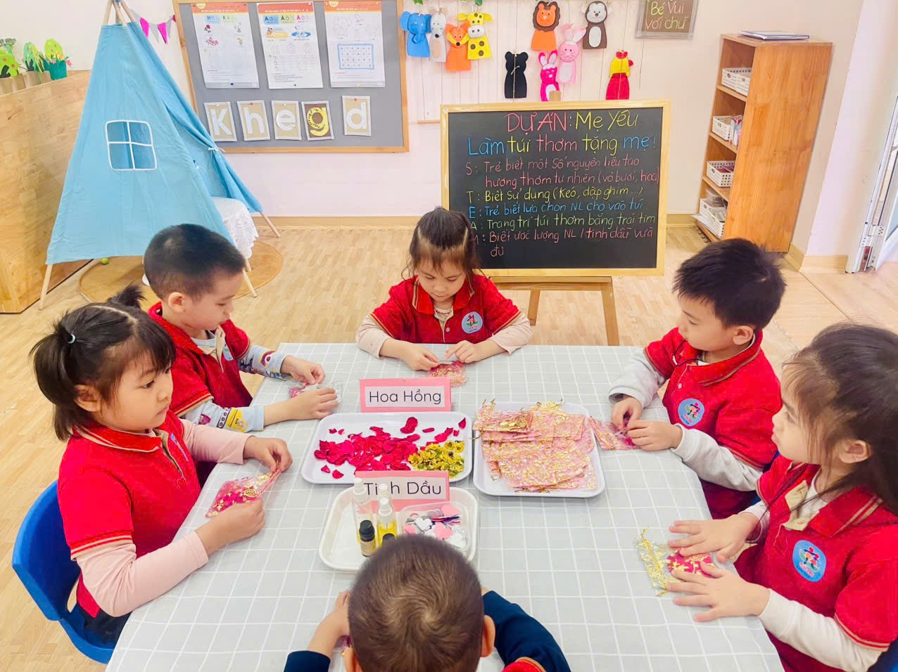 Các Bé lớp MGL A3 làm túi hương thơm tặng Bà, tặng Mẹ, tặng Cô....