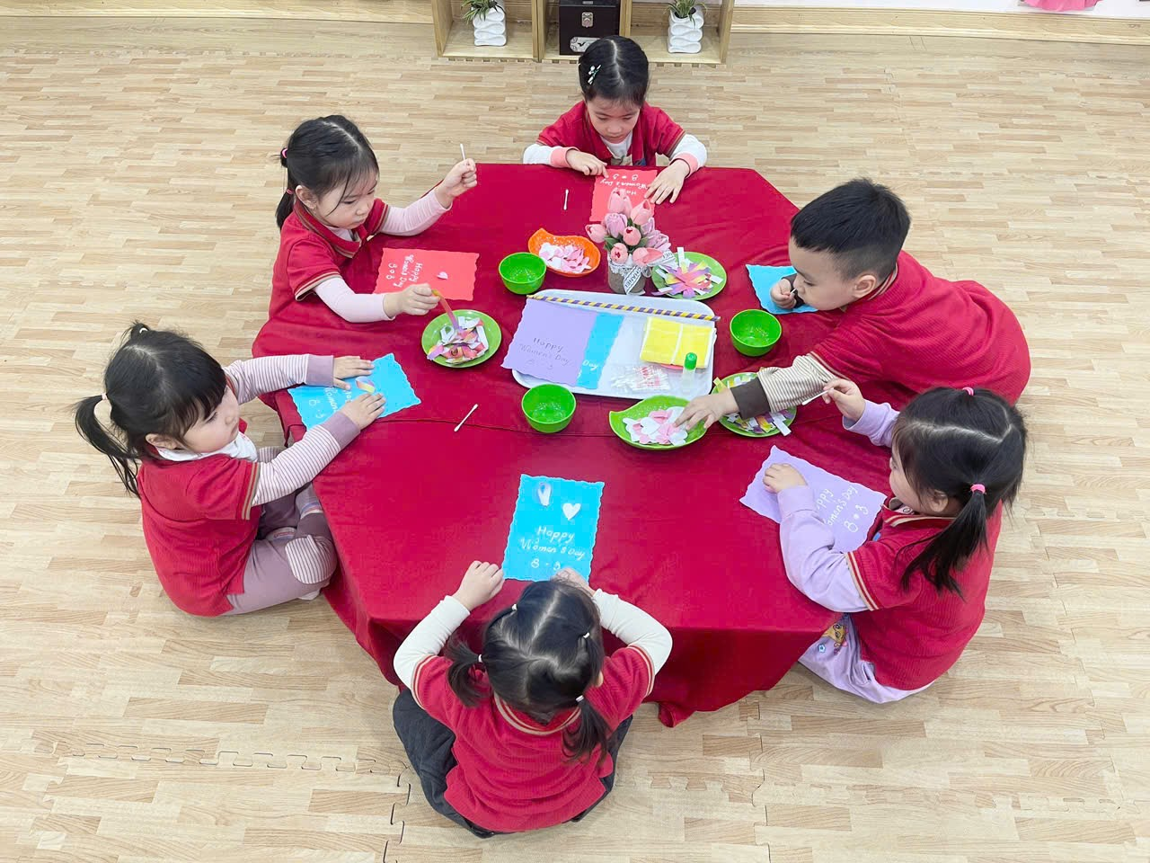 Các Bé lớp NT D1 làm thiệp tặng Bà, tặng Mẹ, tặng Cô...