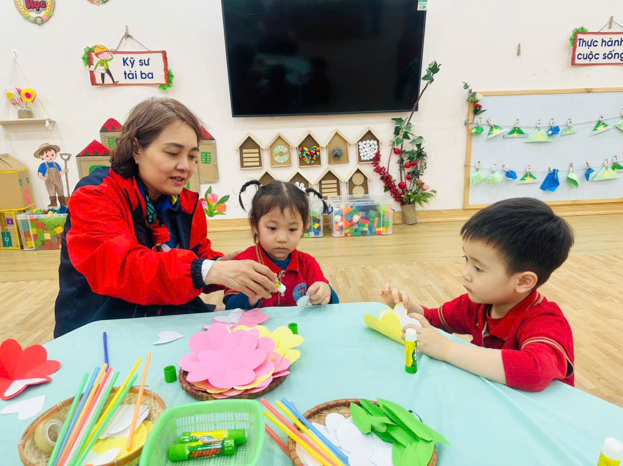 Các Bé lớp MGB C3 làm hoa tặng Bà, tặng Mẹ, tặng Cô...