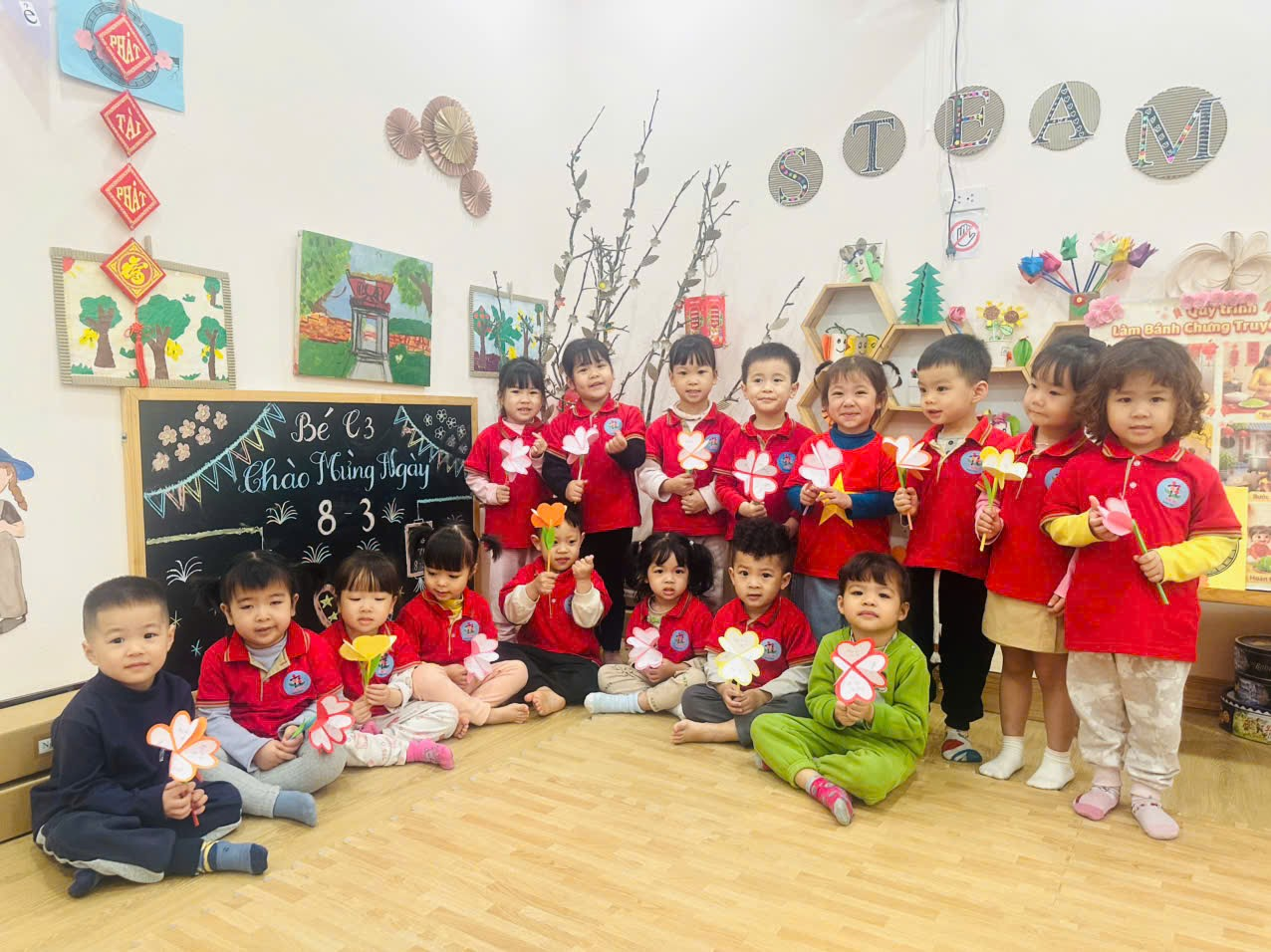 Các Bé trường mầm non Tuổi Thơ hào hứng chào mừng ngày 8/3