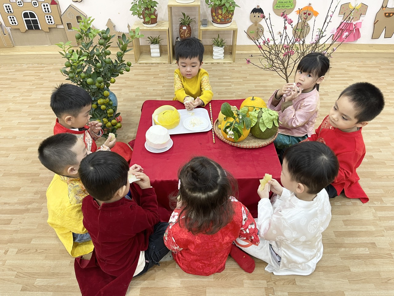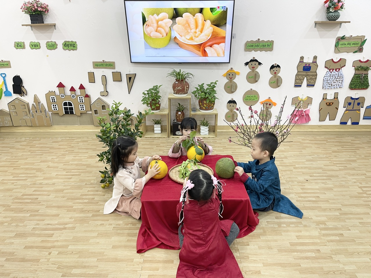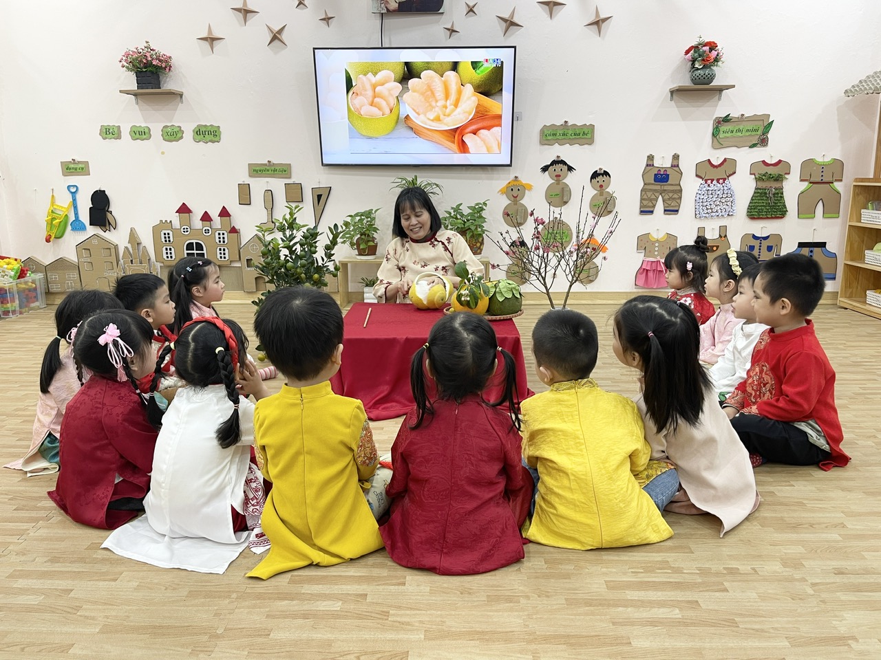 Hoạt động càng thêm sôi nổi hơn khi các bé được nếm thử múi bưởi, chia sẻ cảm nhận của mình: Có bạn thấy ngọt, có bạn thấy hơi chua, nhưng tất cả đều rất hào hứng và lễ phép khi biết mời cô, mời bạn. Thông qua đó, trẻ được giáo dục kỹ năng sống, kỹ năng giao tiếp và thói quen ăn uống lành mạnh.